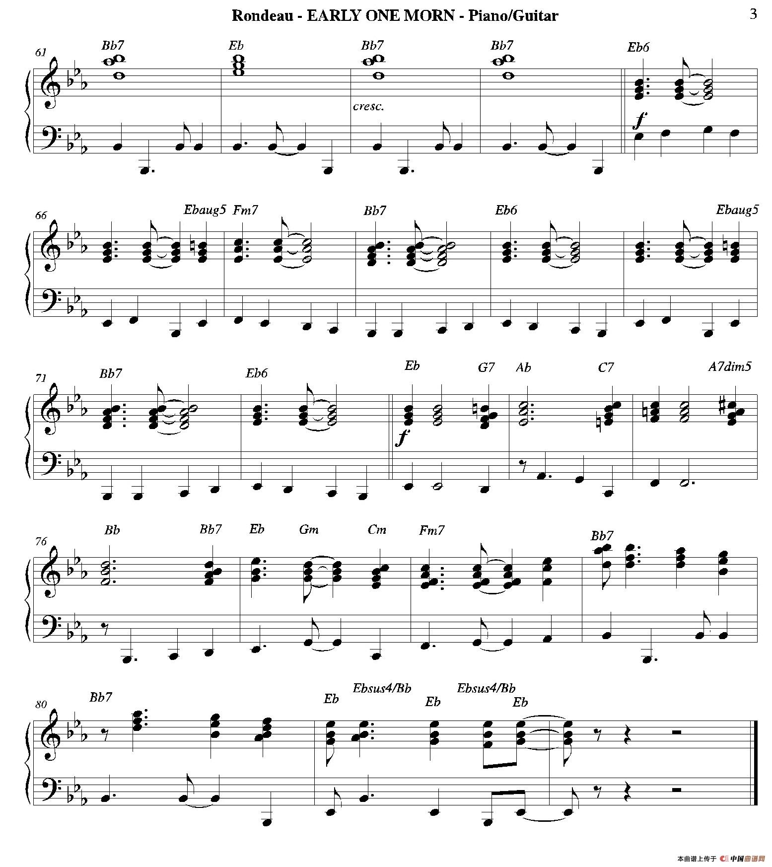 EARLY ONE MORN(钢琴吉他分谱)相关五线谱