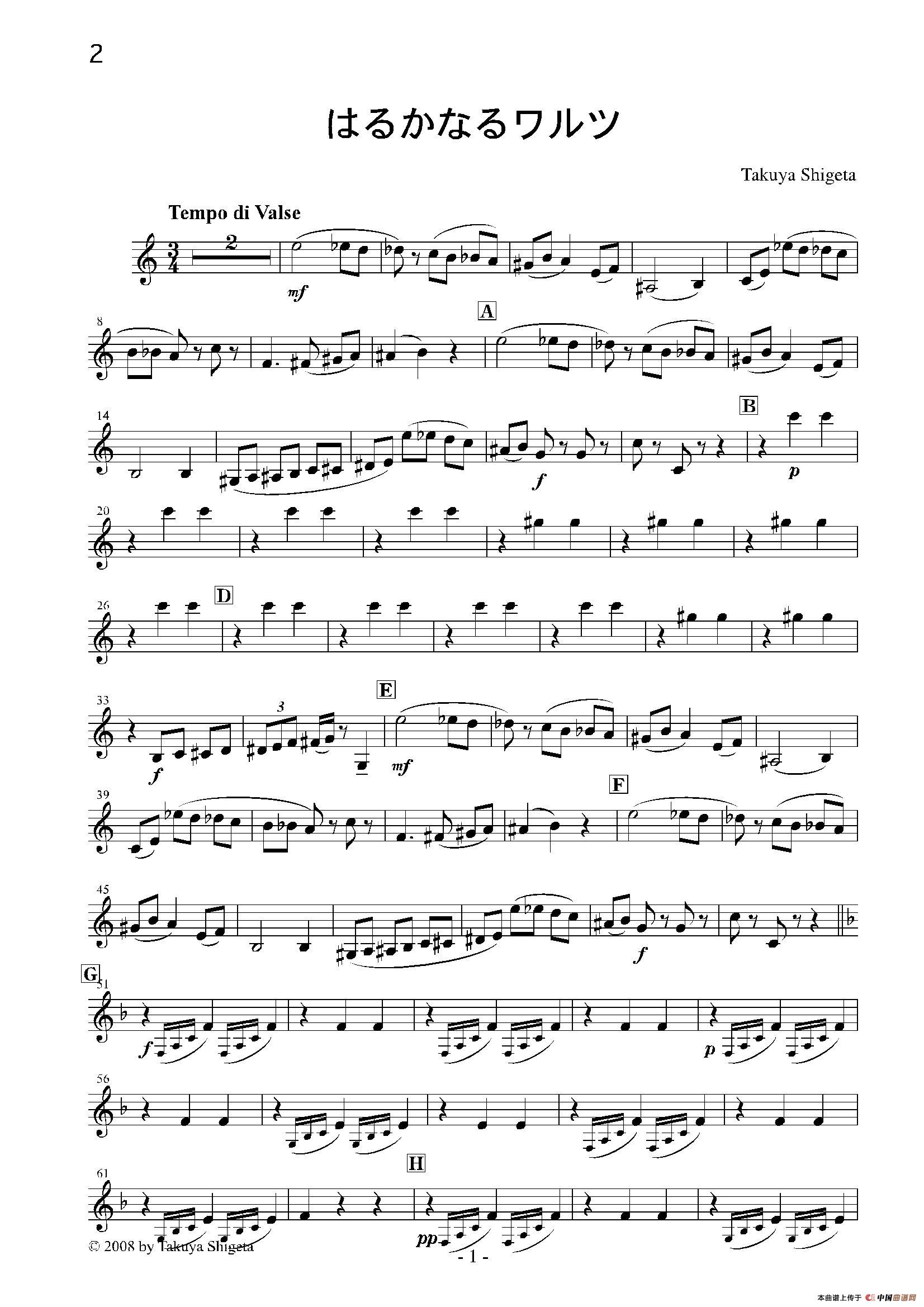 Haruka naru Warutsu(木管四重奏第二单簧管分谱)