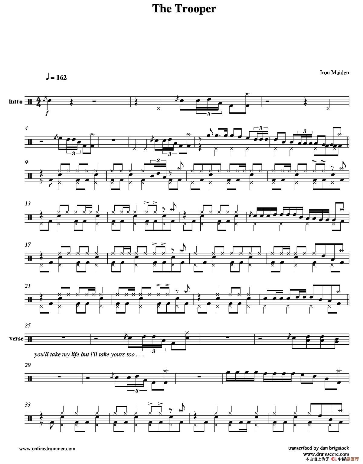 The Trooper(鼓谱)相关五线谱