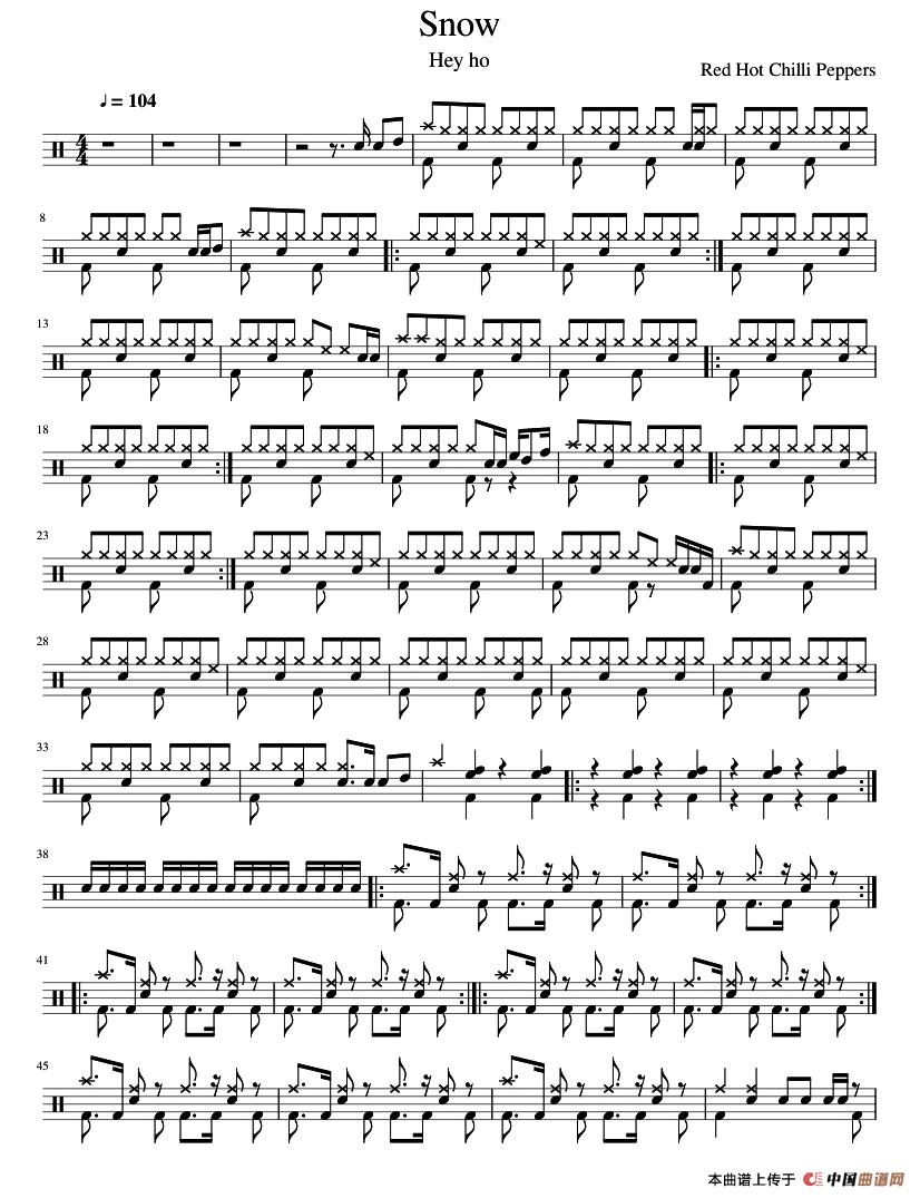 Snow(鼓谱)相关五线谱