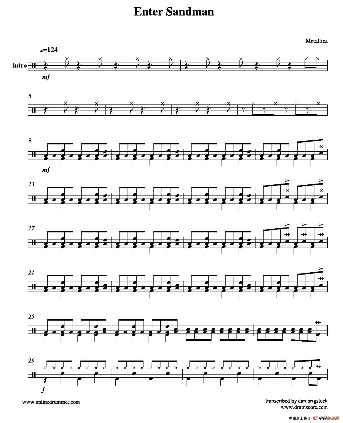 Enter Sandman(鼓谱)相关五线谱