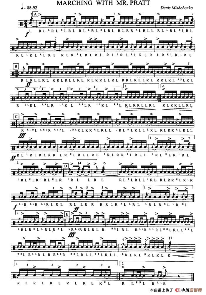 超正规军鼓独奏练习(8)相关五线谱
