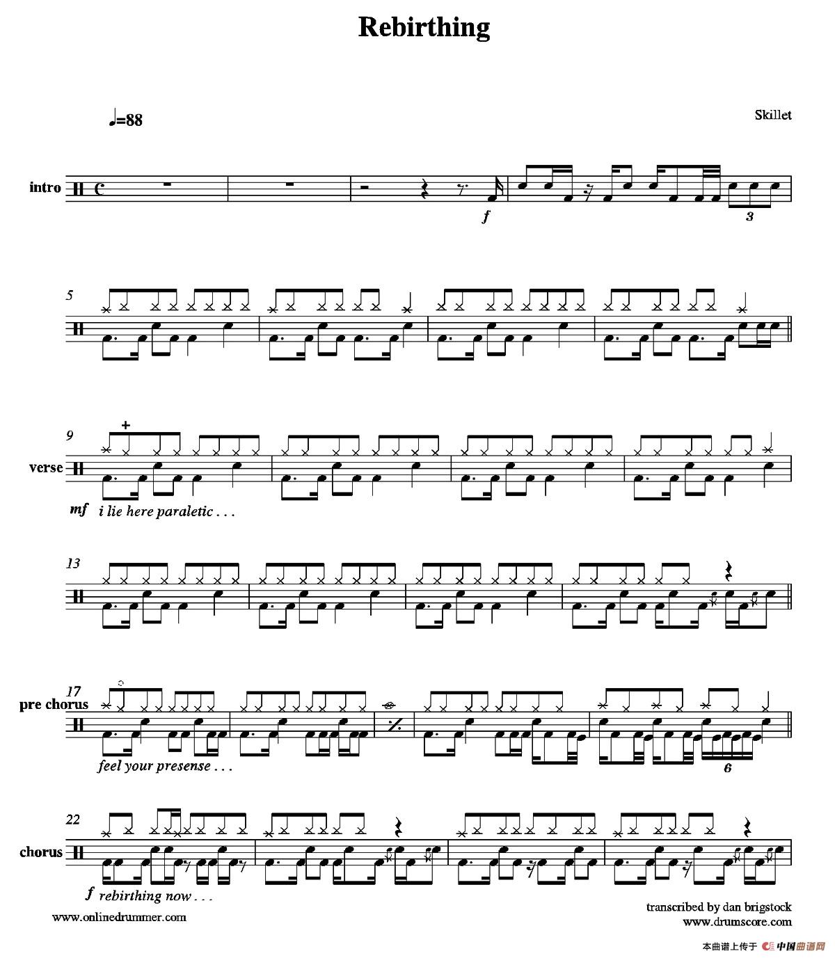 Rebirthing(鼓谱)相关五线谱