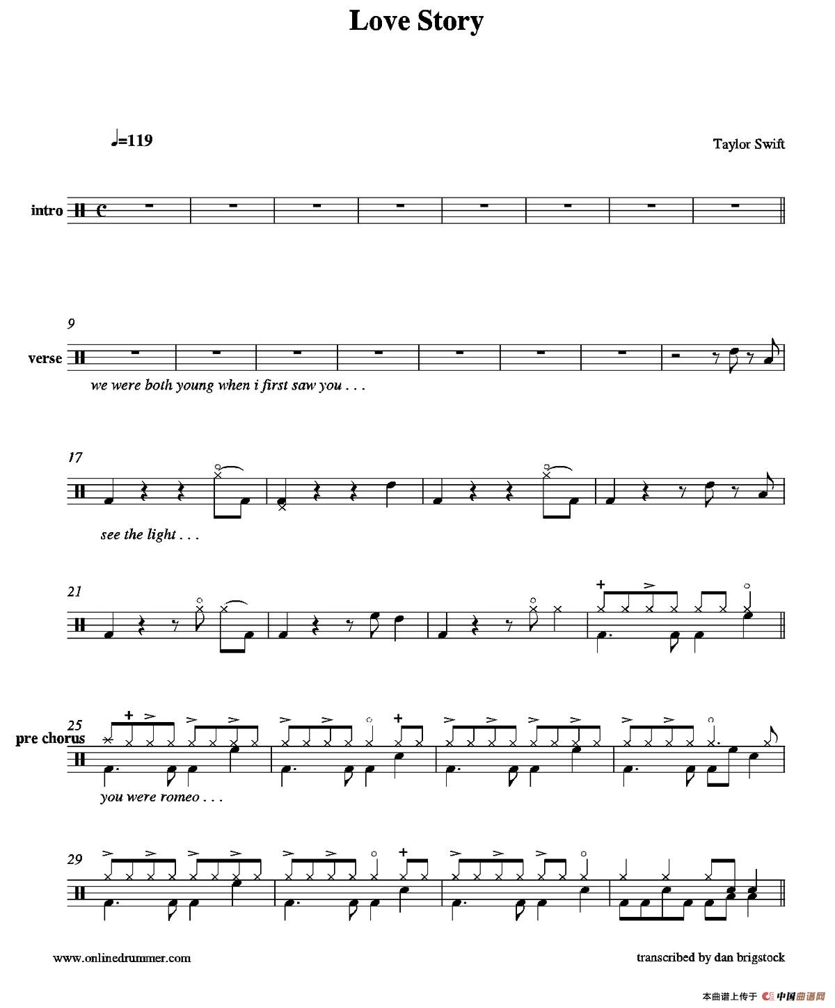 Love Story(鼓谱)相关五线谱