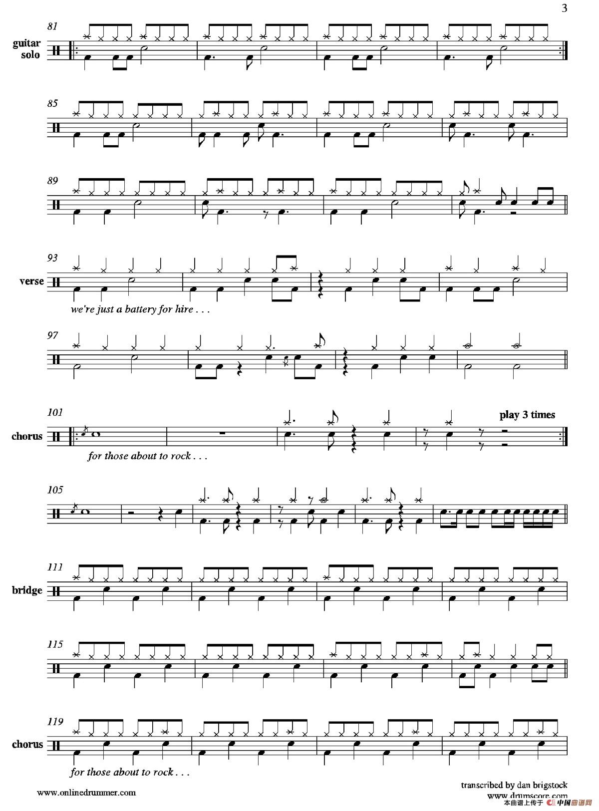 For Those About To Rock(鼓谱)相关五线谱