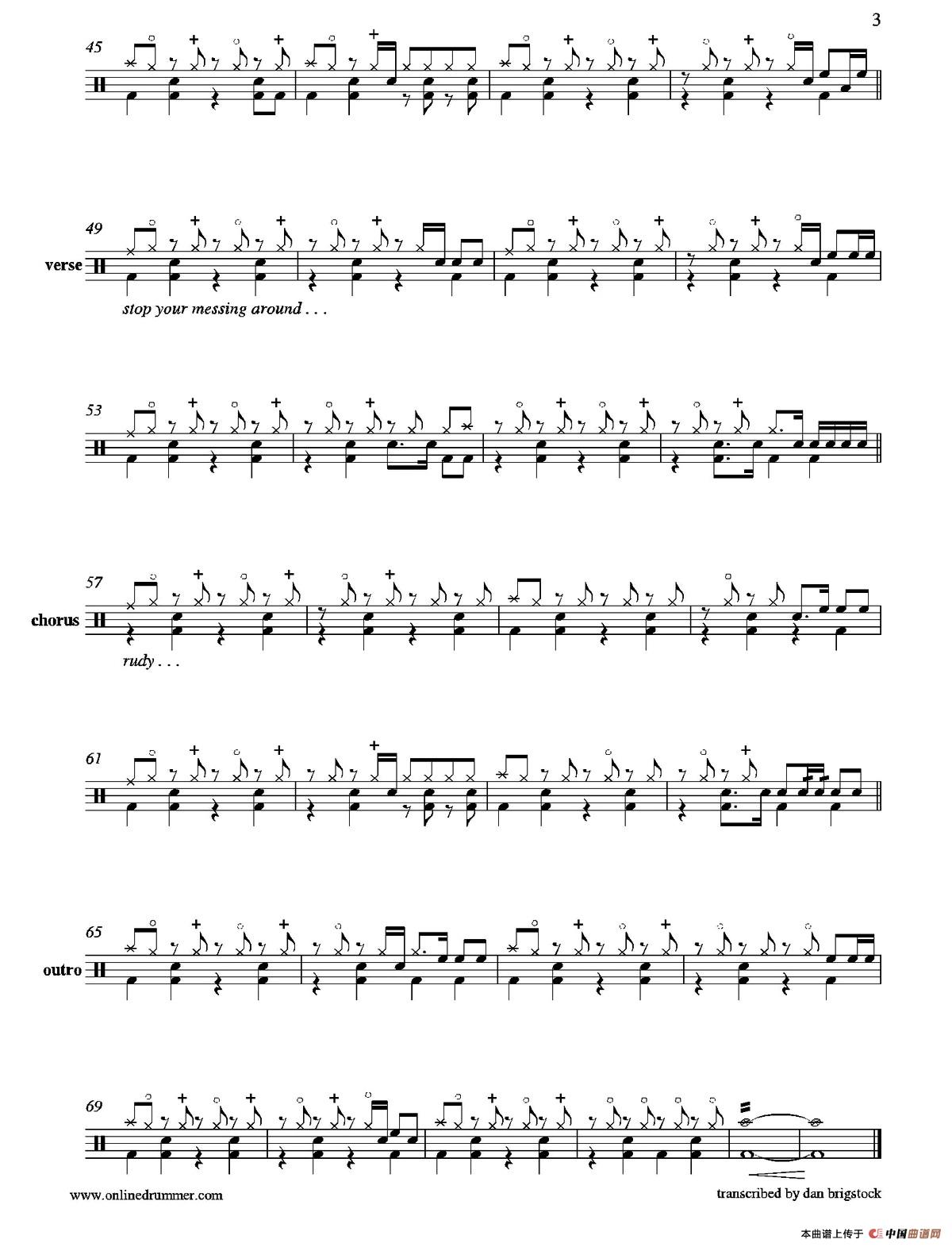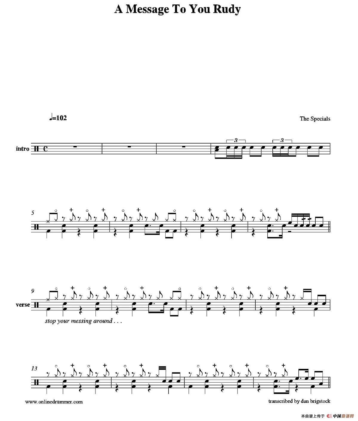 A Message To You Rudy(鼓谱)相关五线谱