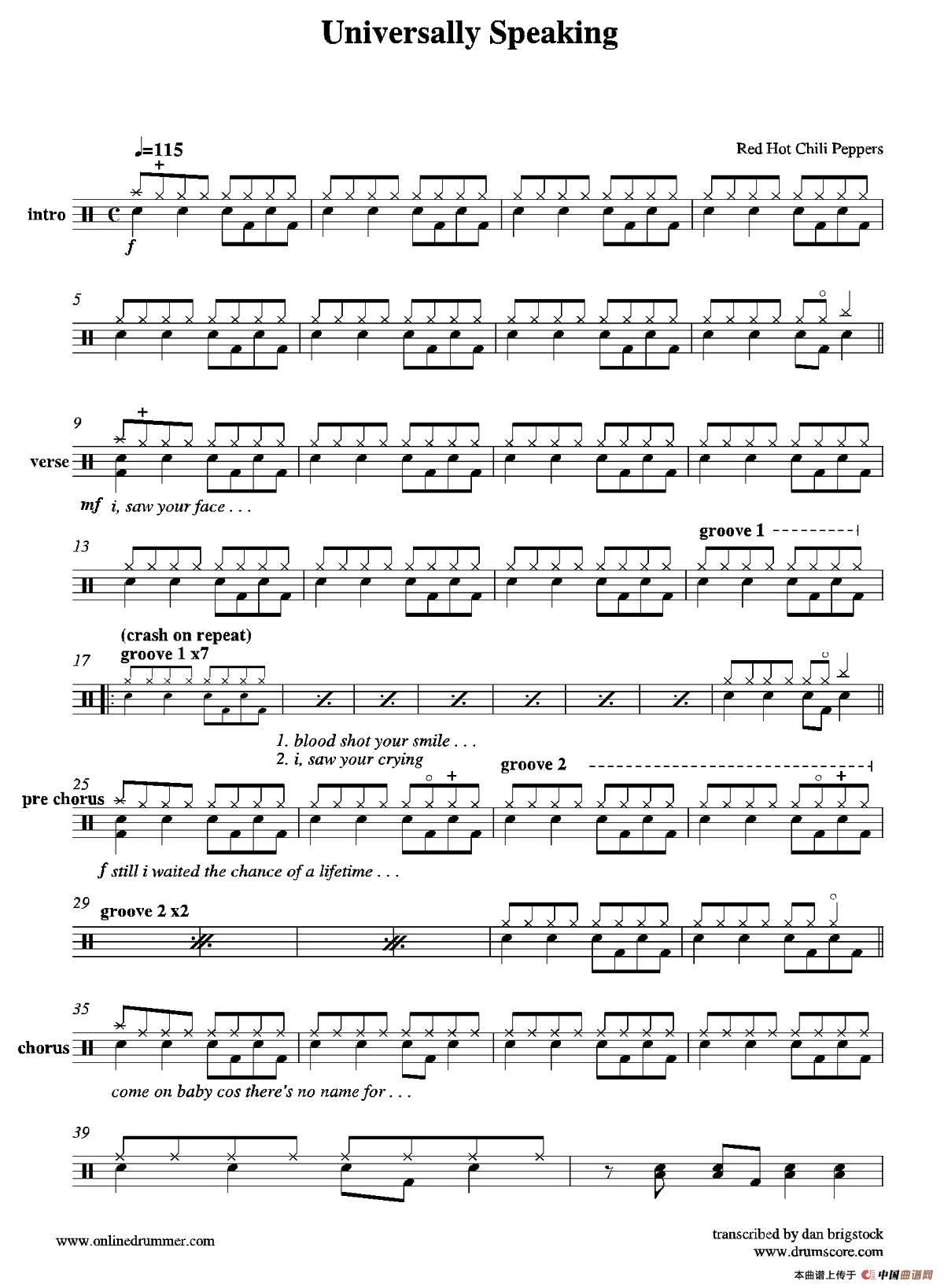 Universally Speaking(鼓谱)相关五线谱