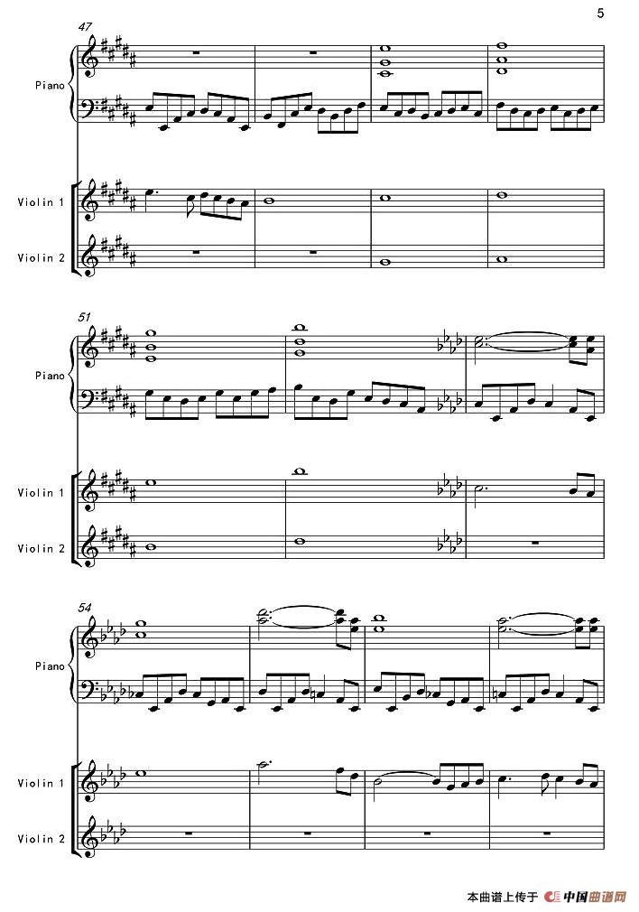 降A大调小夜曲II(夜)(双小提琴+钢琴)相关五线谱