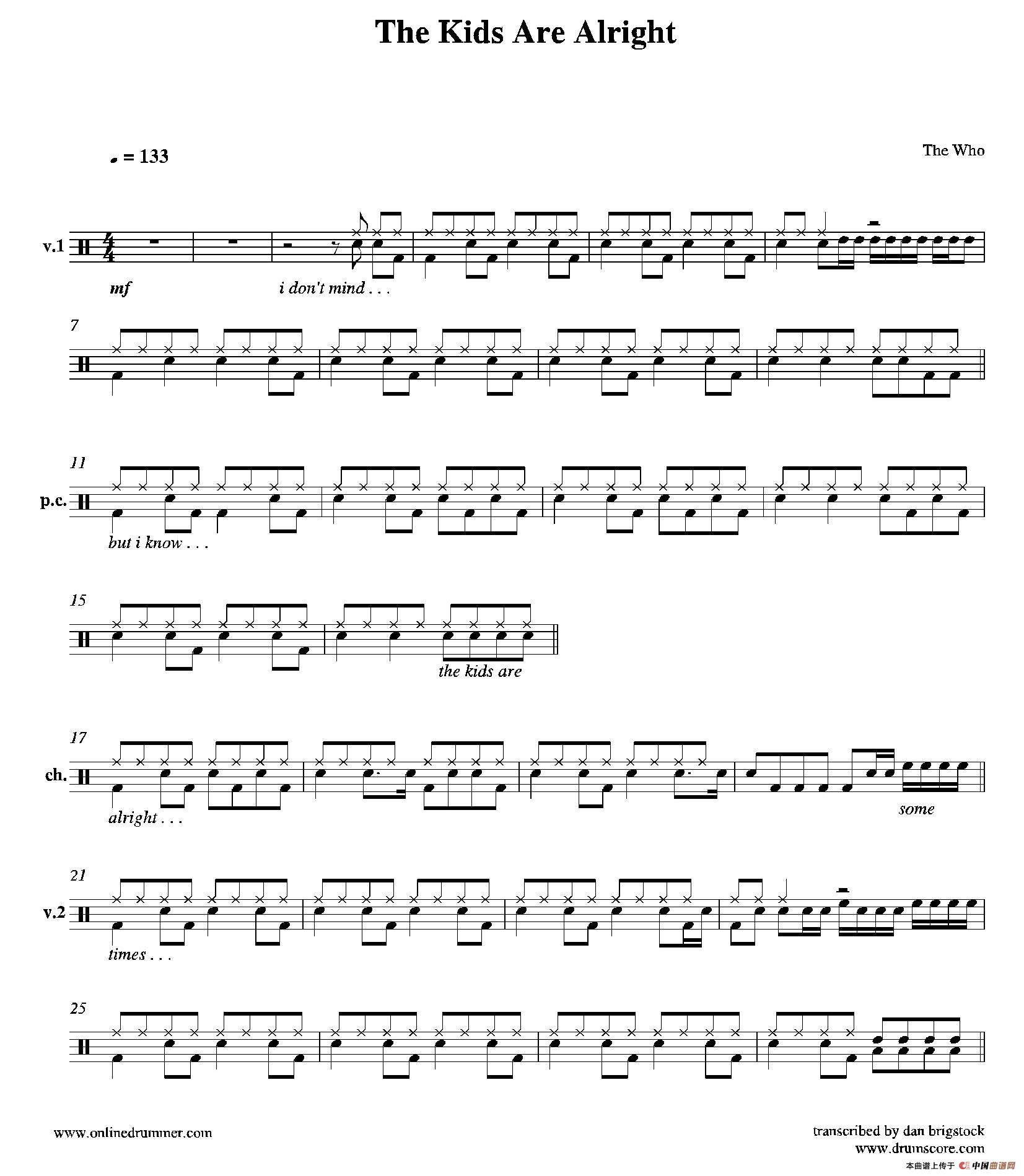 The Kids Are Alright(鼓谱)相关五线谱