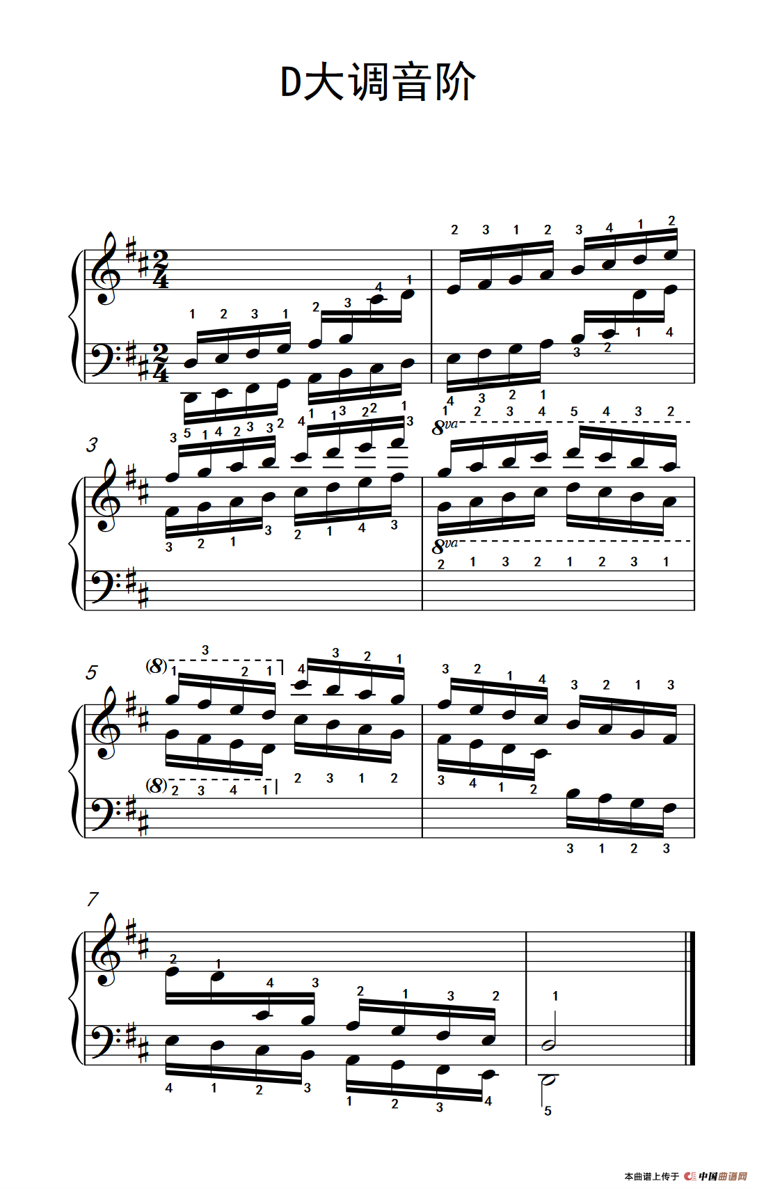 第四级 5.D大调音阶(中央音乐学院 钢琴(业余)考级教程 4-6级)
