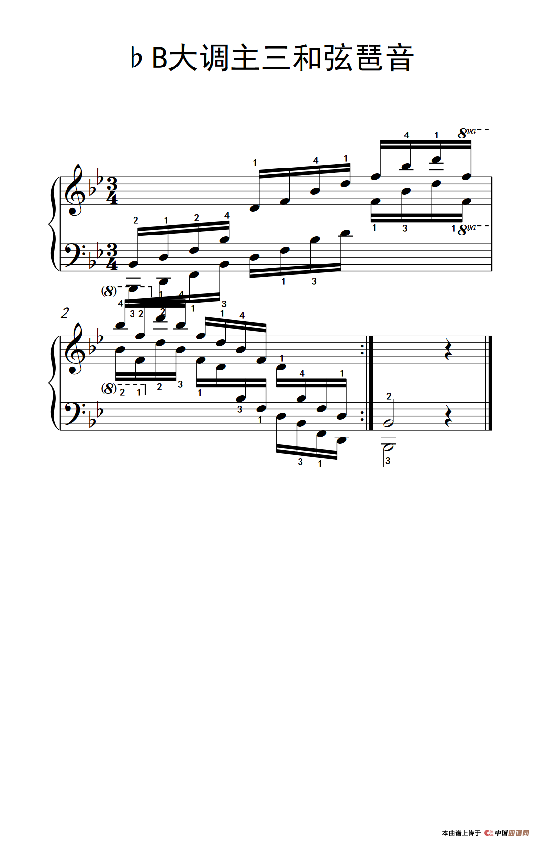 第六级 5.♭B大调主三和弦琶音(中央音乐学院 钢琴(业余)考级教程 4-6级)