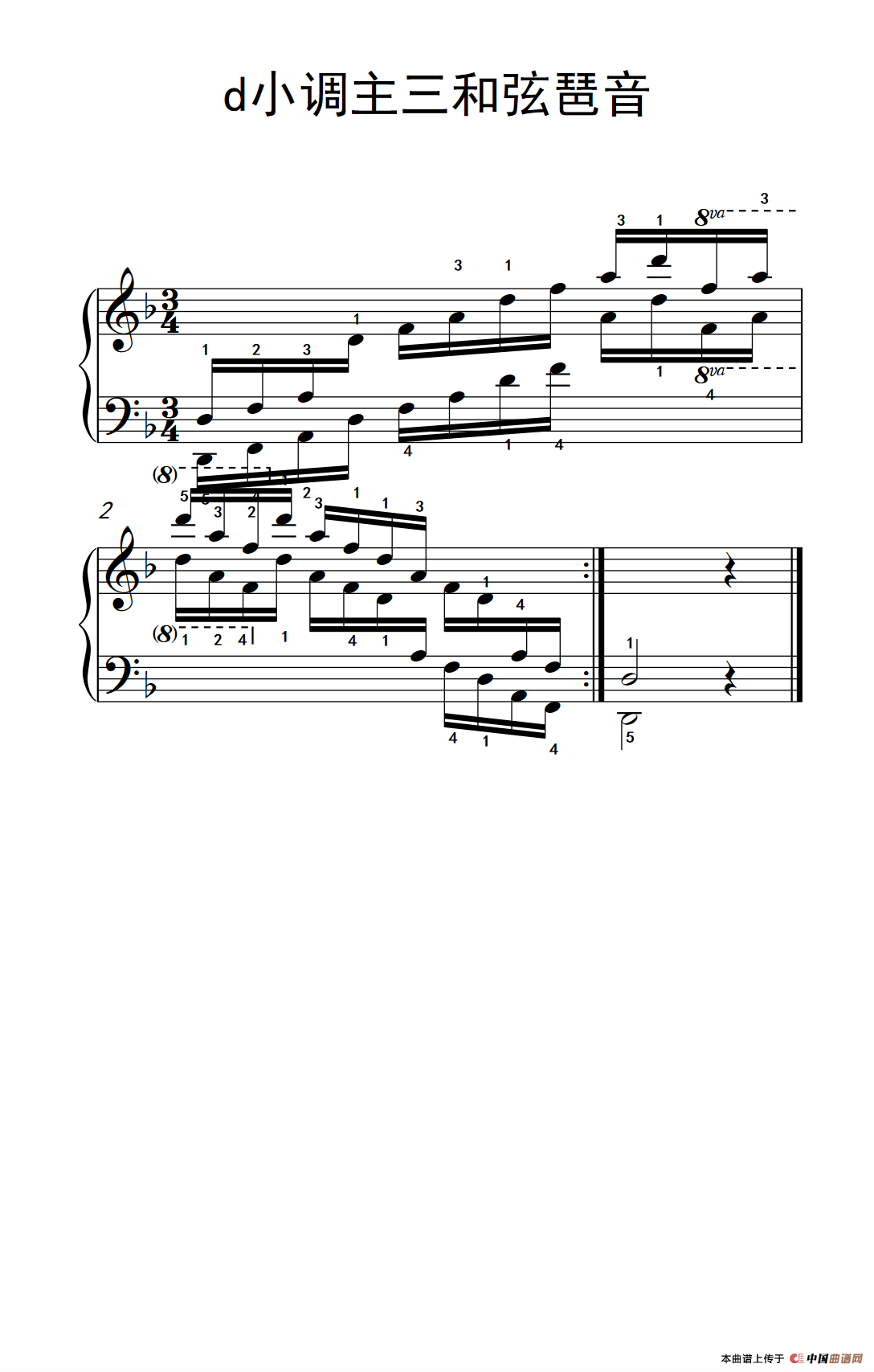 第六级 4.d小调主三和弦琶音(中央音乐学院 钢琴(业余)考级教程 4-6级)
