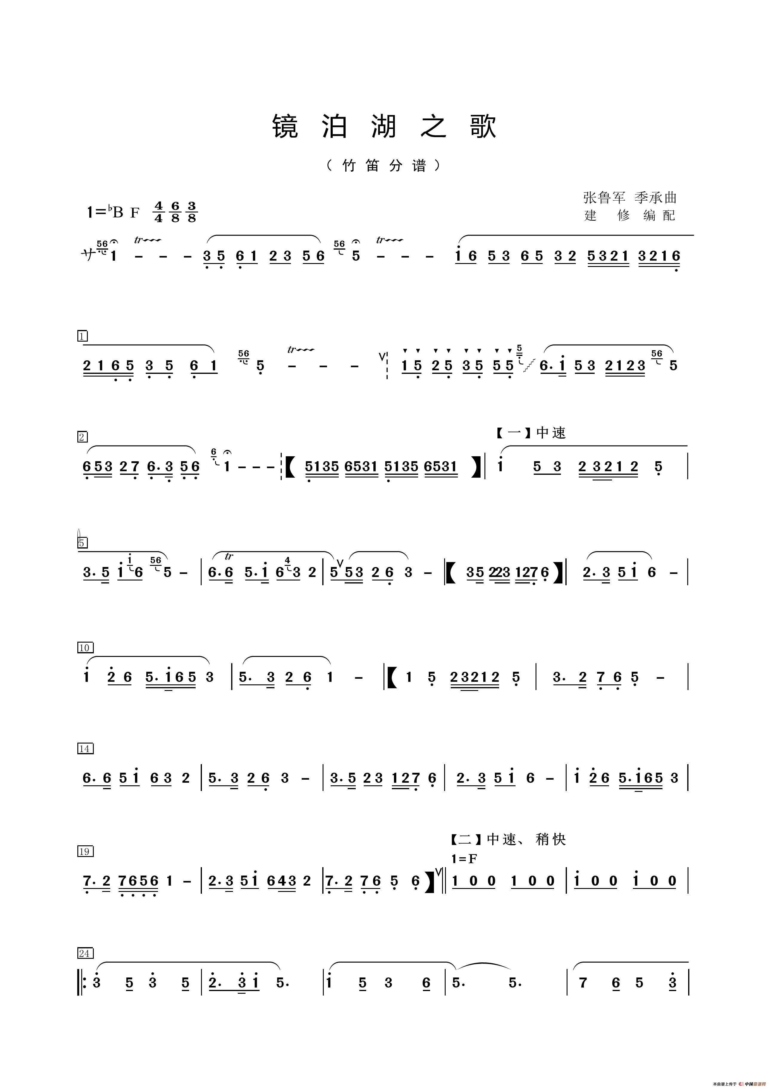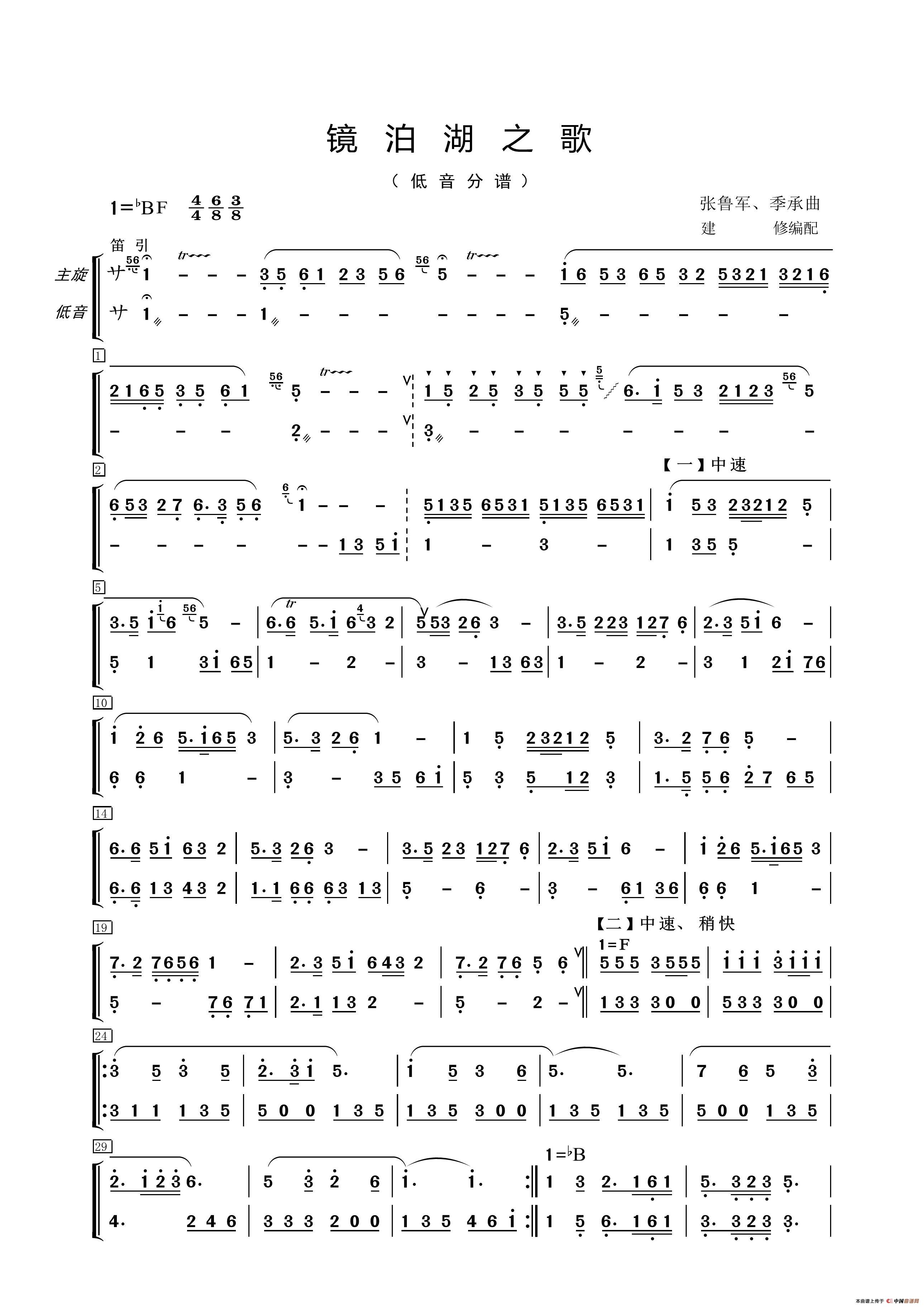 镜泊湖之歌(器乐合奏分谱)相关五线谱