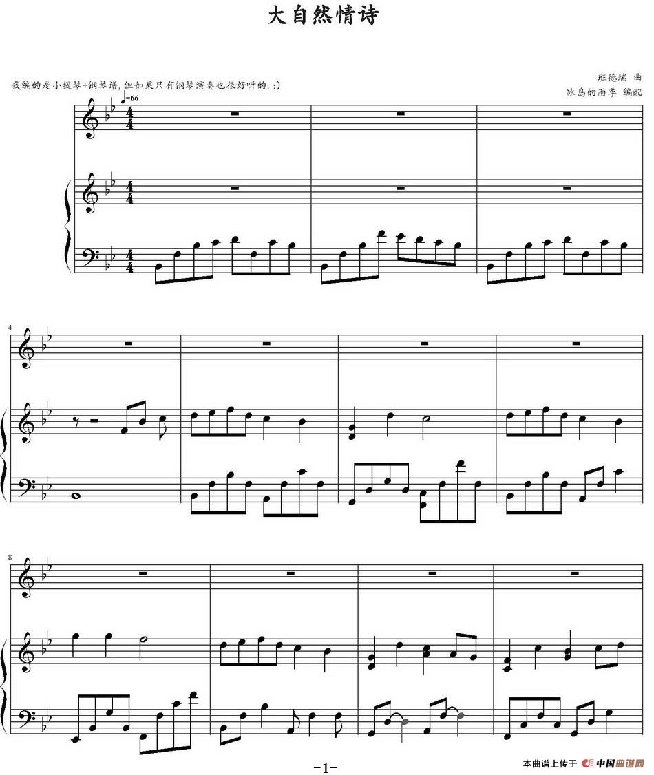 大自然情诗 (小提琴+钢琴)相关五线谱