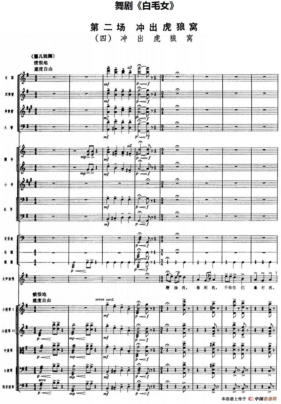 舞剧《白毛女》第二场 冲出虎狼窝(四)冲出虎狼窝(总谱)相关五线谱