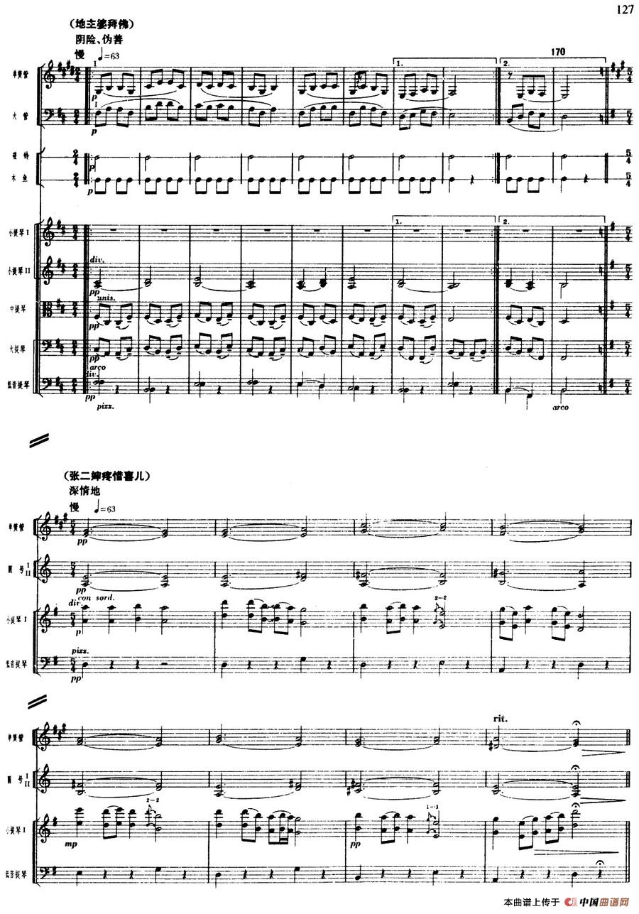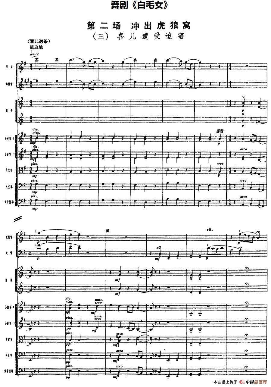 舞剧《白毛女》第二场 冲出虎狼窝(三)喜儿遭受迫害(总谱)相关五线谱