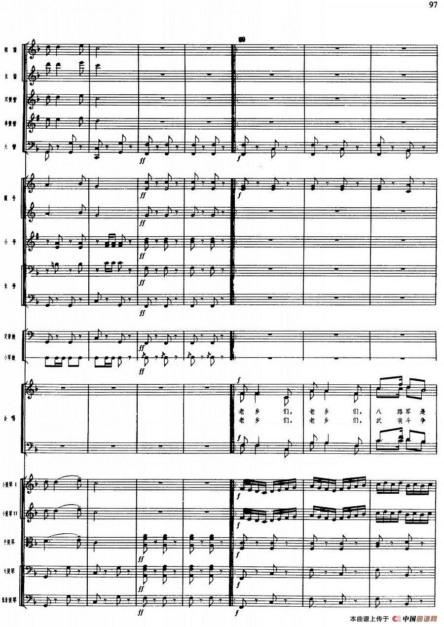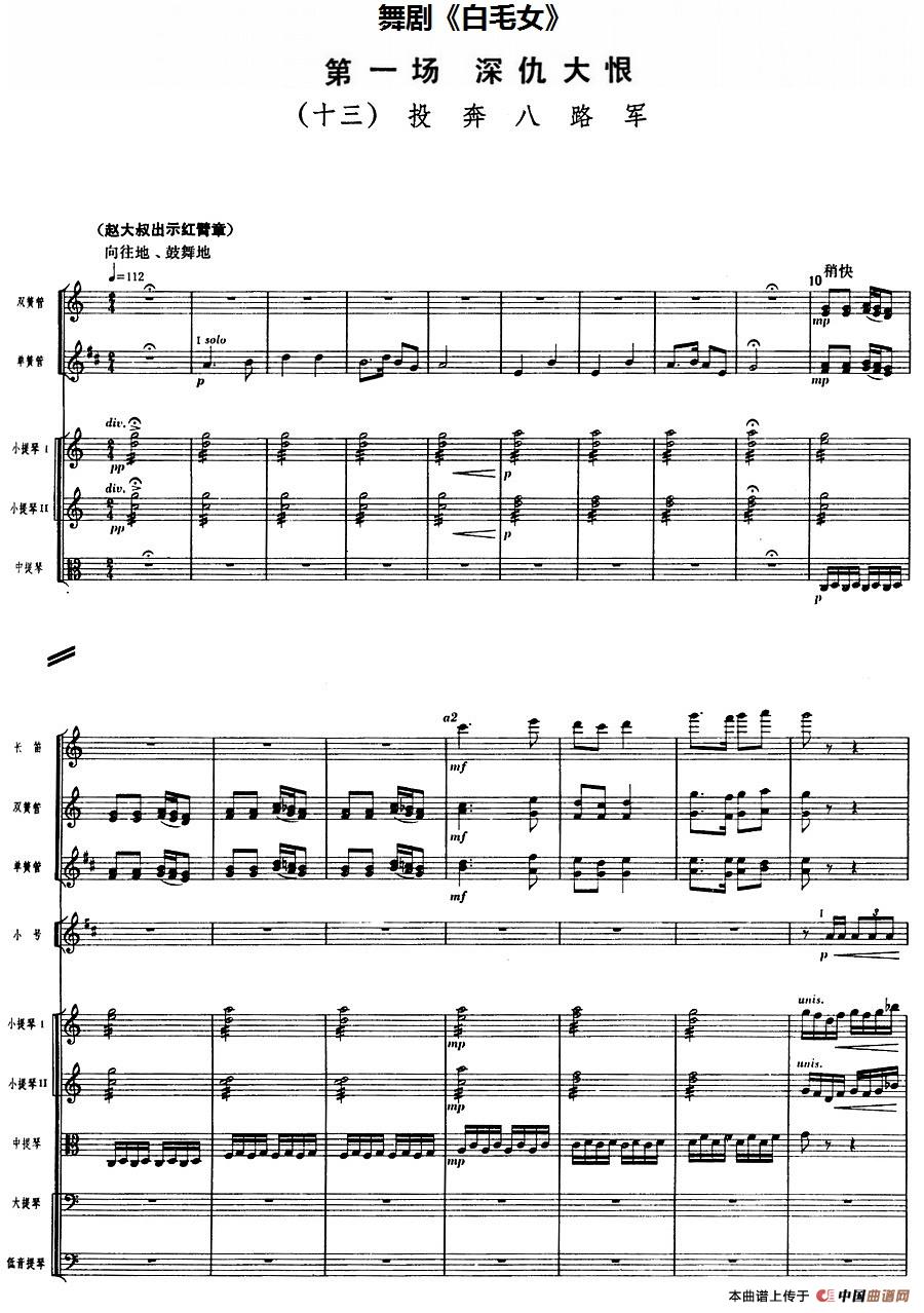 舞剧《白毛女》第一场 深仇大恨(十三)投奔八路军(总谱)相关五线谱
