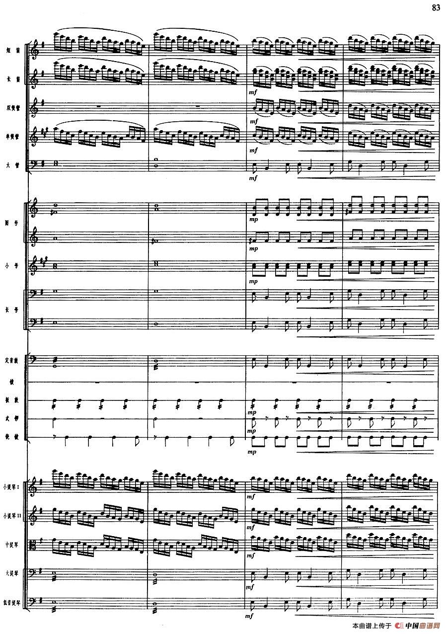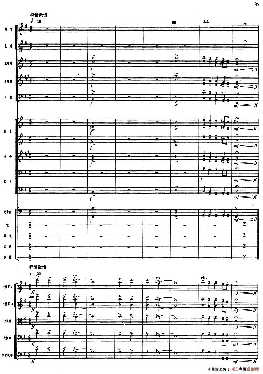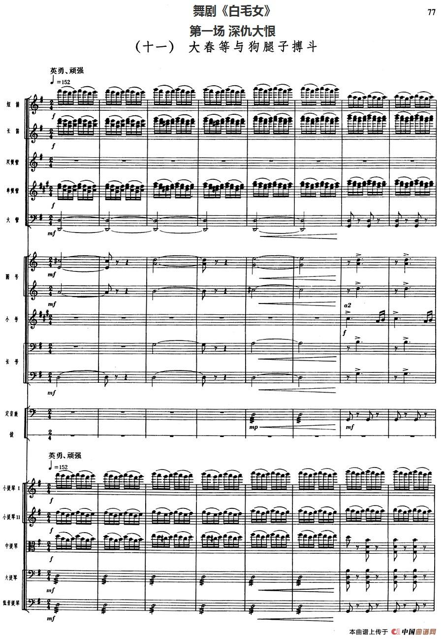 舞剧《白毛女》第一场 深仇大恨(十一)大春等与狗腿子搏斗(总谱)相关五线谱