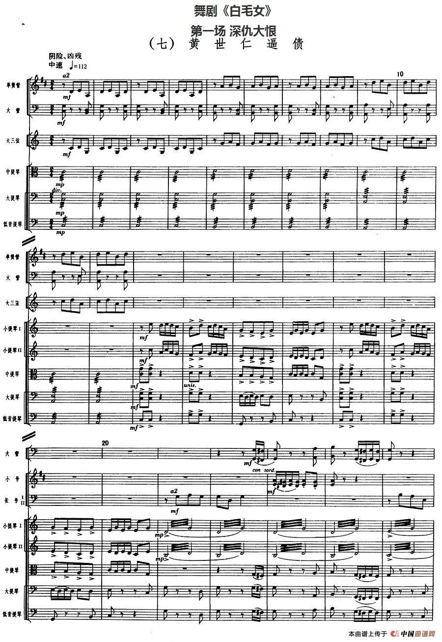 舞剧《白毛女》第一场 深仇大恨(七)黄世仁逼债(总谱)相关五线谱