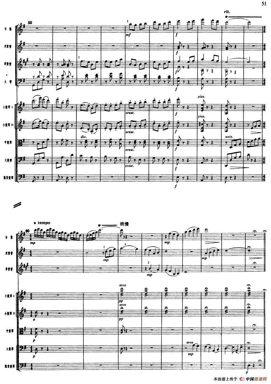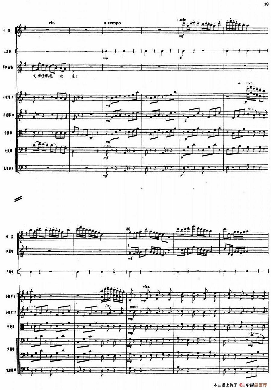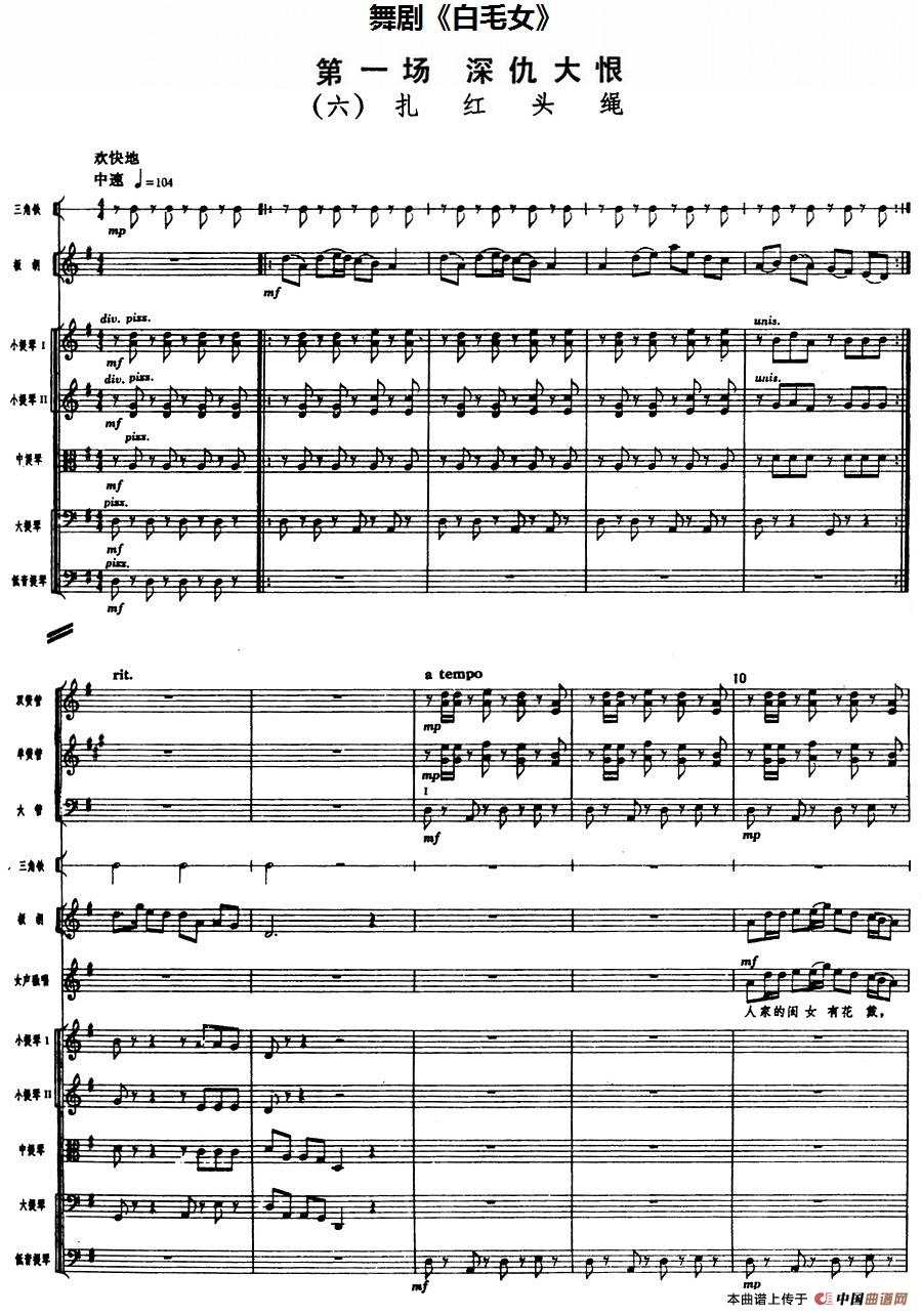 舞剧《白毛女》第一场 深仇大恨(六)扎红头绳(总谱)相关五线谱