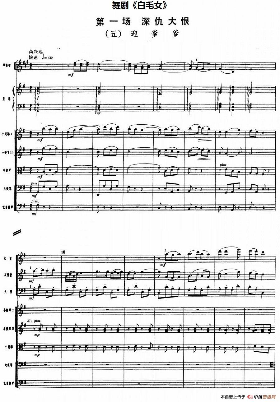 舞剧《白毛女》第一场 深仇大恨(五)迎爹爹(总谱)相关五线谱