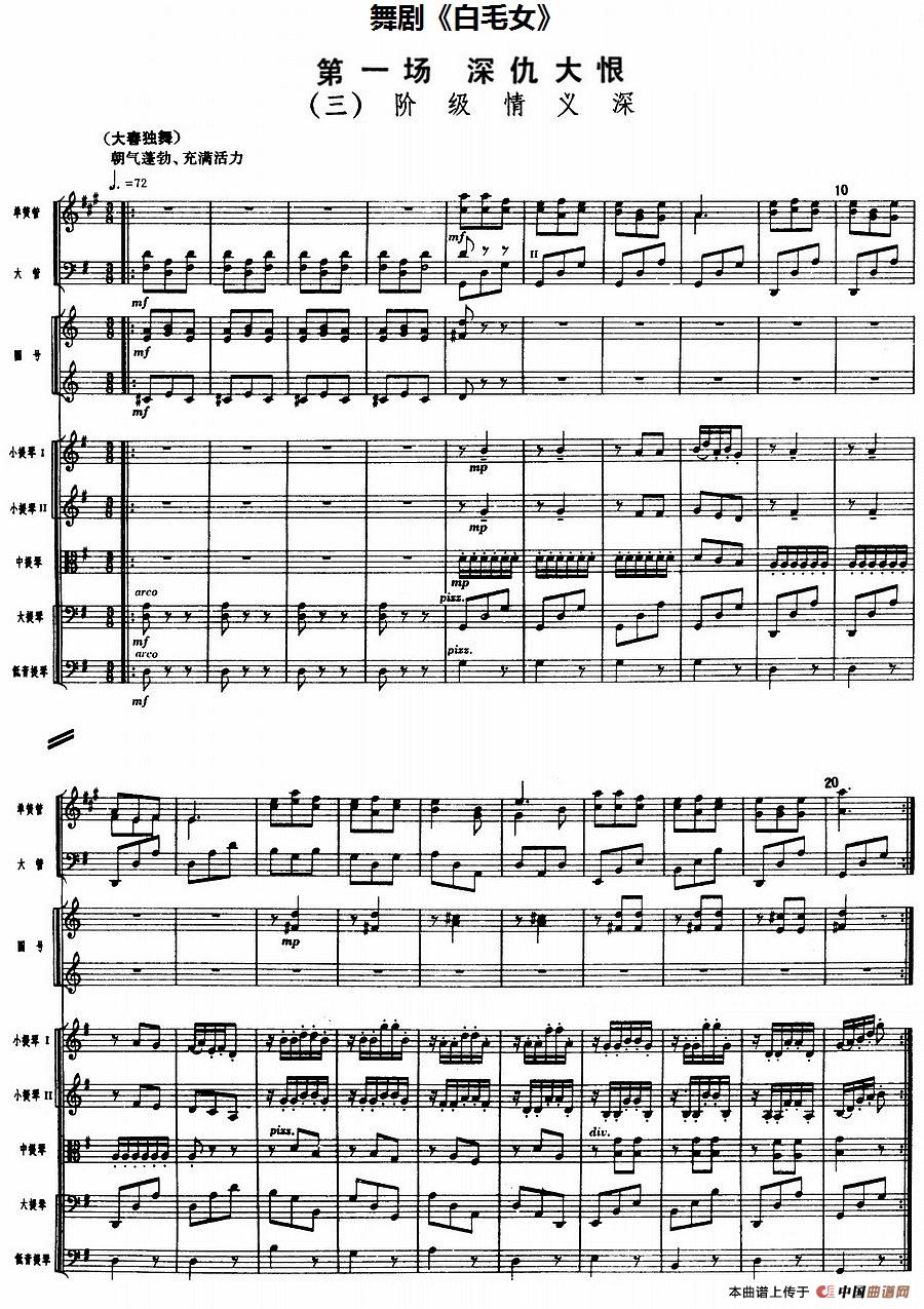 舞剧《白毛女》第一场 深仇大恨(三)阶级情义深(总谱)相关五线谱