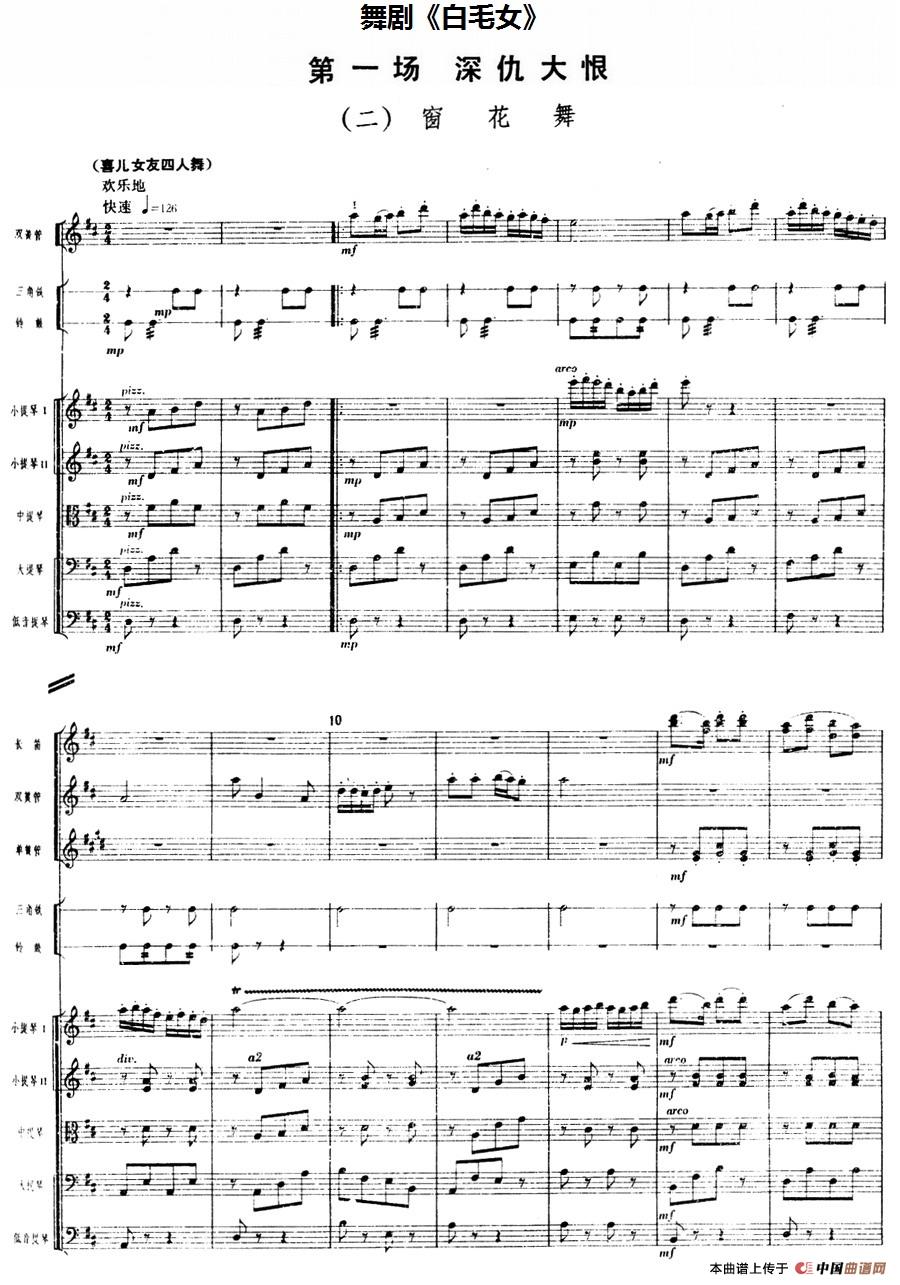 舞剧《白毛女》第一场 深仇大恨(二)窗花舞(总谱)相关五线谱