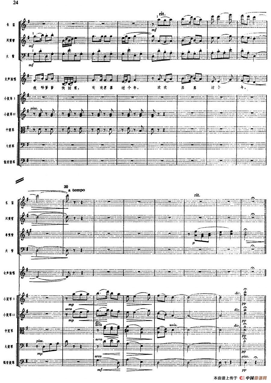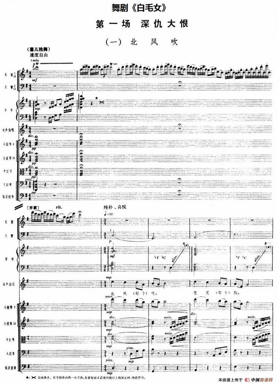 舞剧《白毛女》第一场 深仇大恨(一)北风吹(总谱)相关五线谱