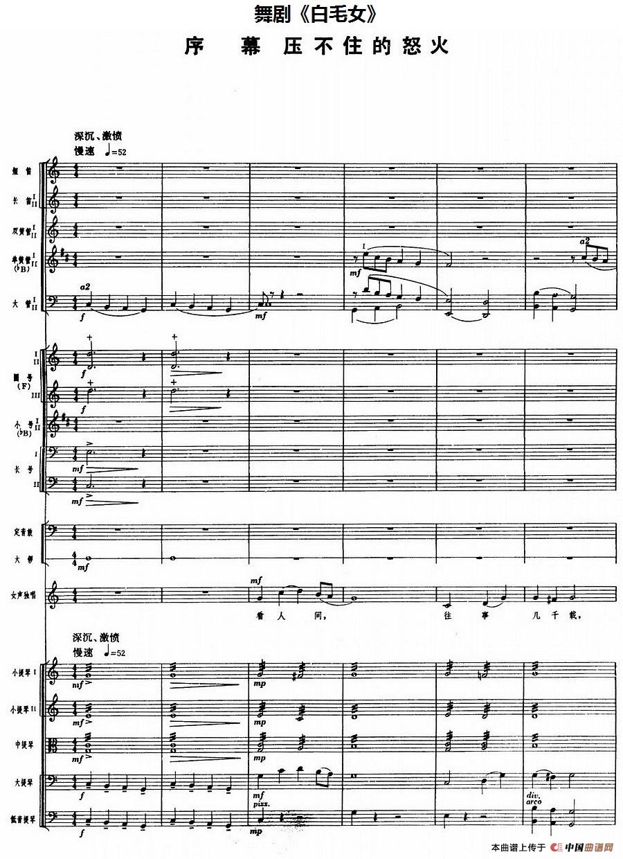 舞剧《白毛女》序幕 压不住的怒火(总谱)相关五线谱