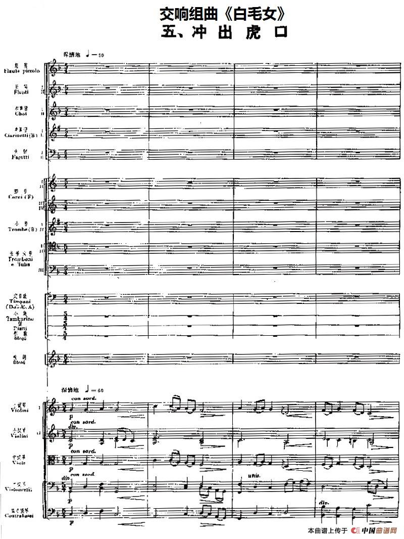 交响组曲《白毛女》冲出虎口(总谱)相关五线谱
