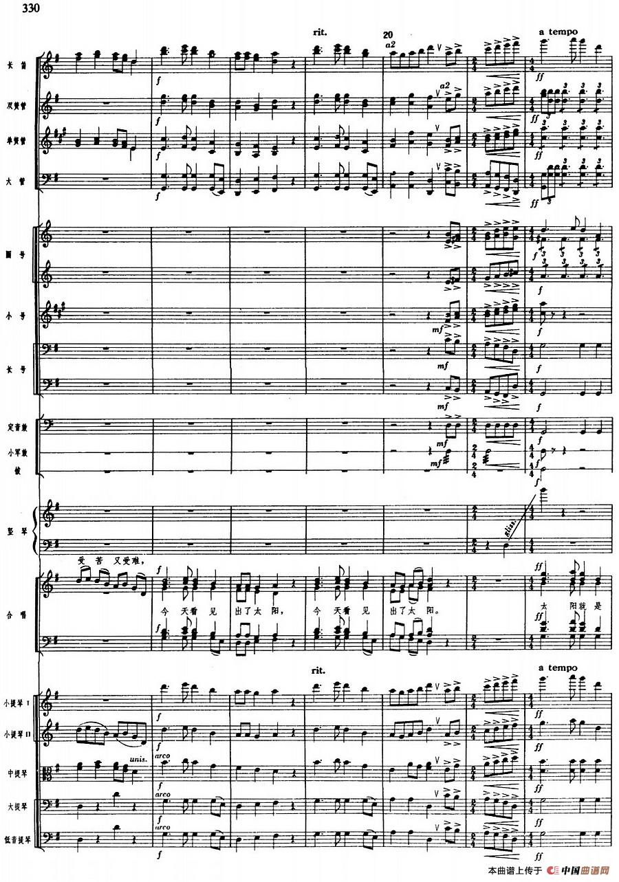 舞剧《白毛女》第七场 太阳出来了(五)太阳出来了(总谱)相关五线谱