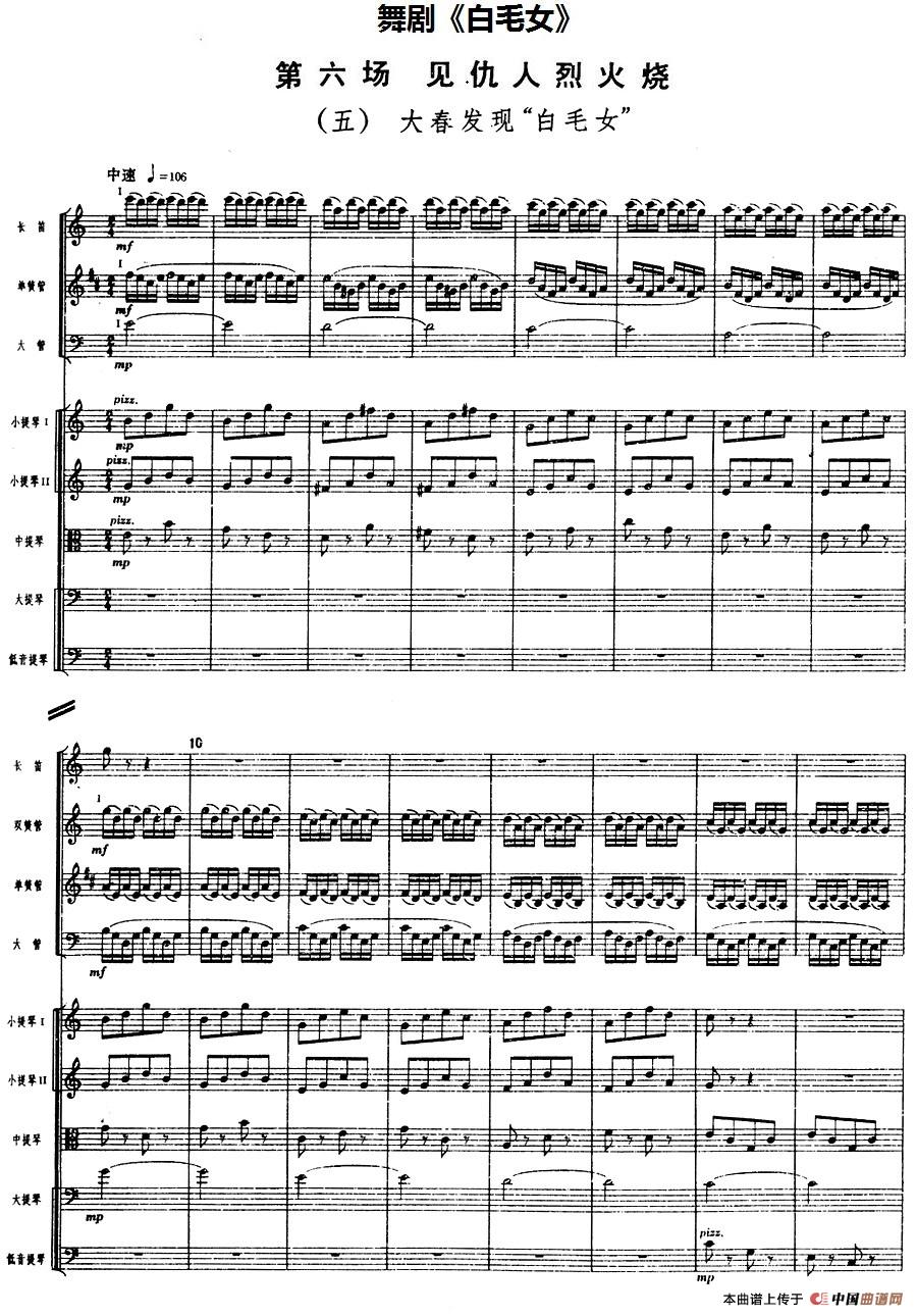 舞剧《白毛女》第六场 见仇人烈火烧(五)大春发现“白毛女”(总谱)相关五线谱