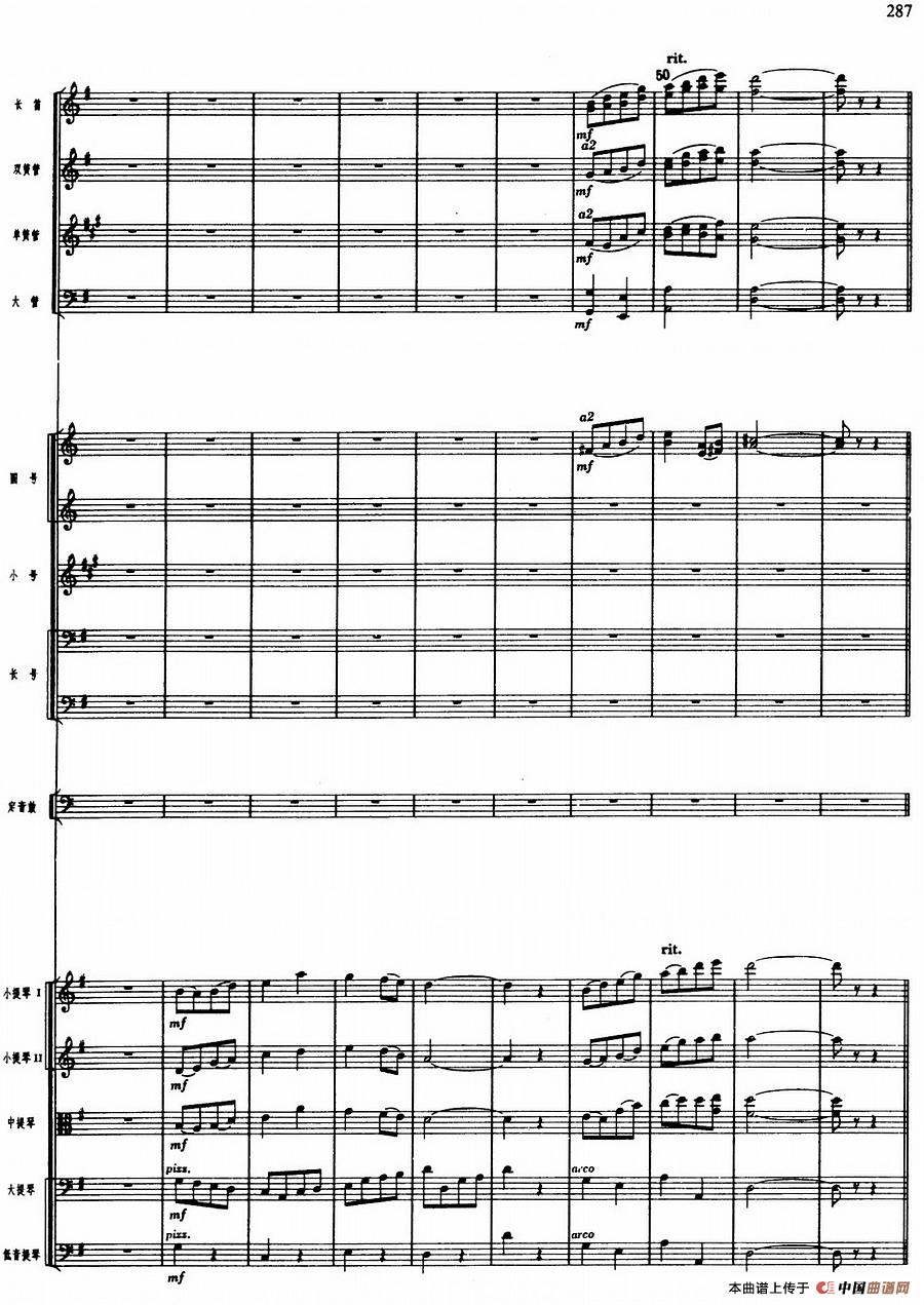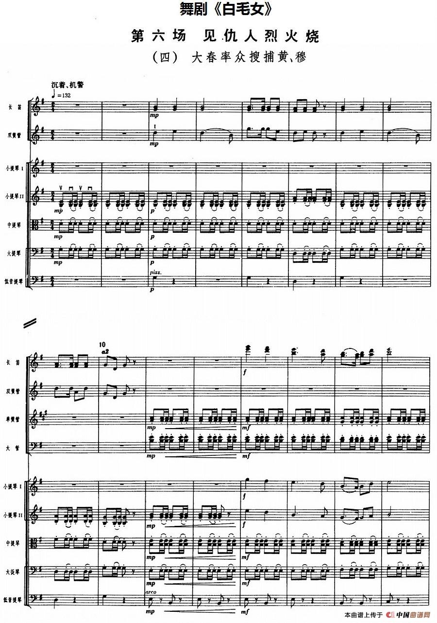 舞剧《白毛女》第六场 见仇人烈火烧(四)大春率众搜捕黄、穆(总谱)相关五线谱
