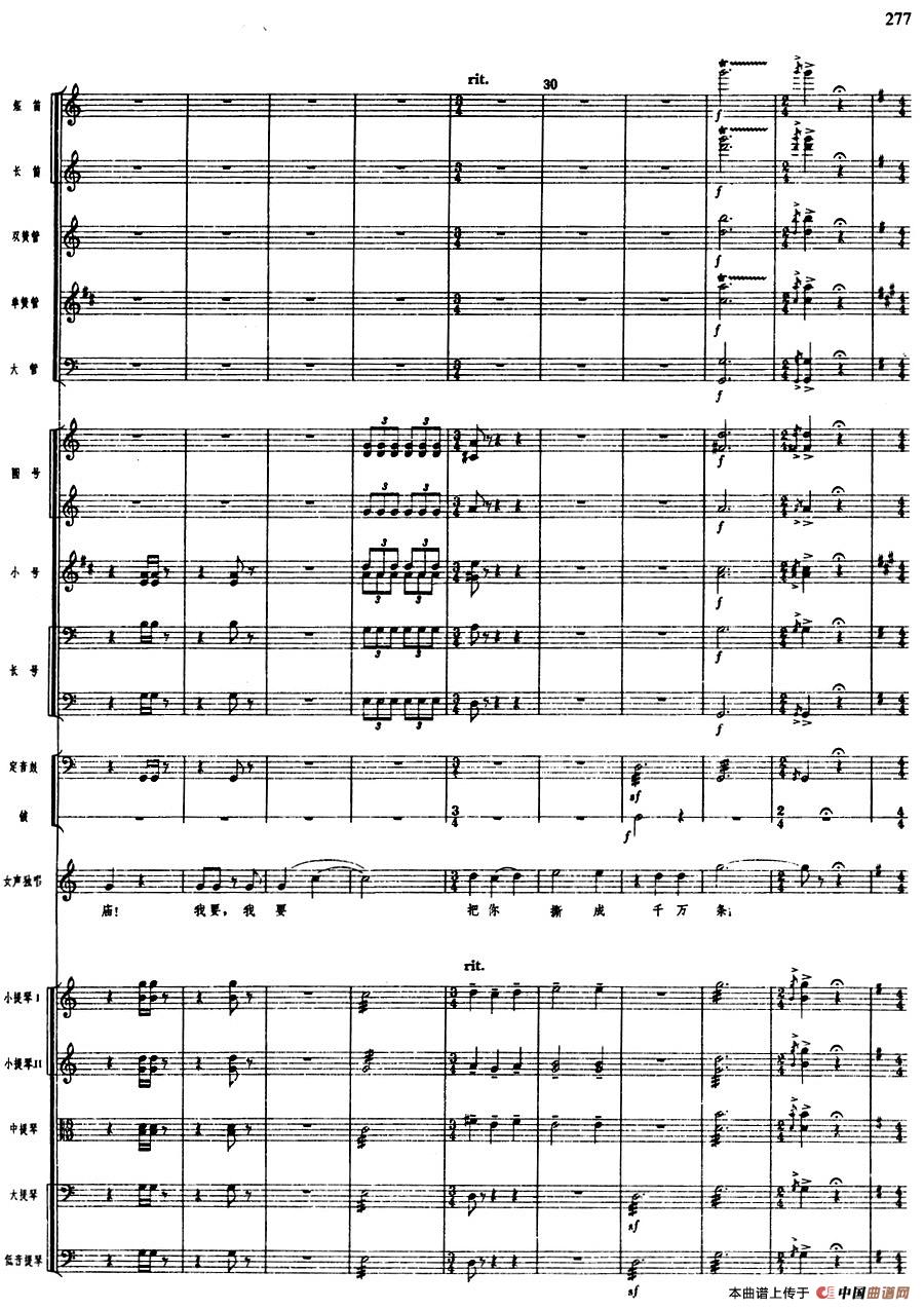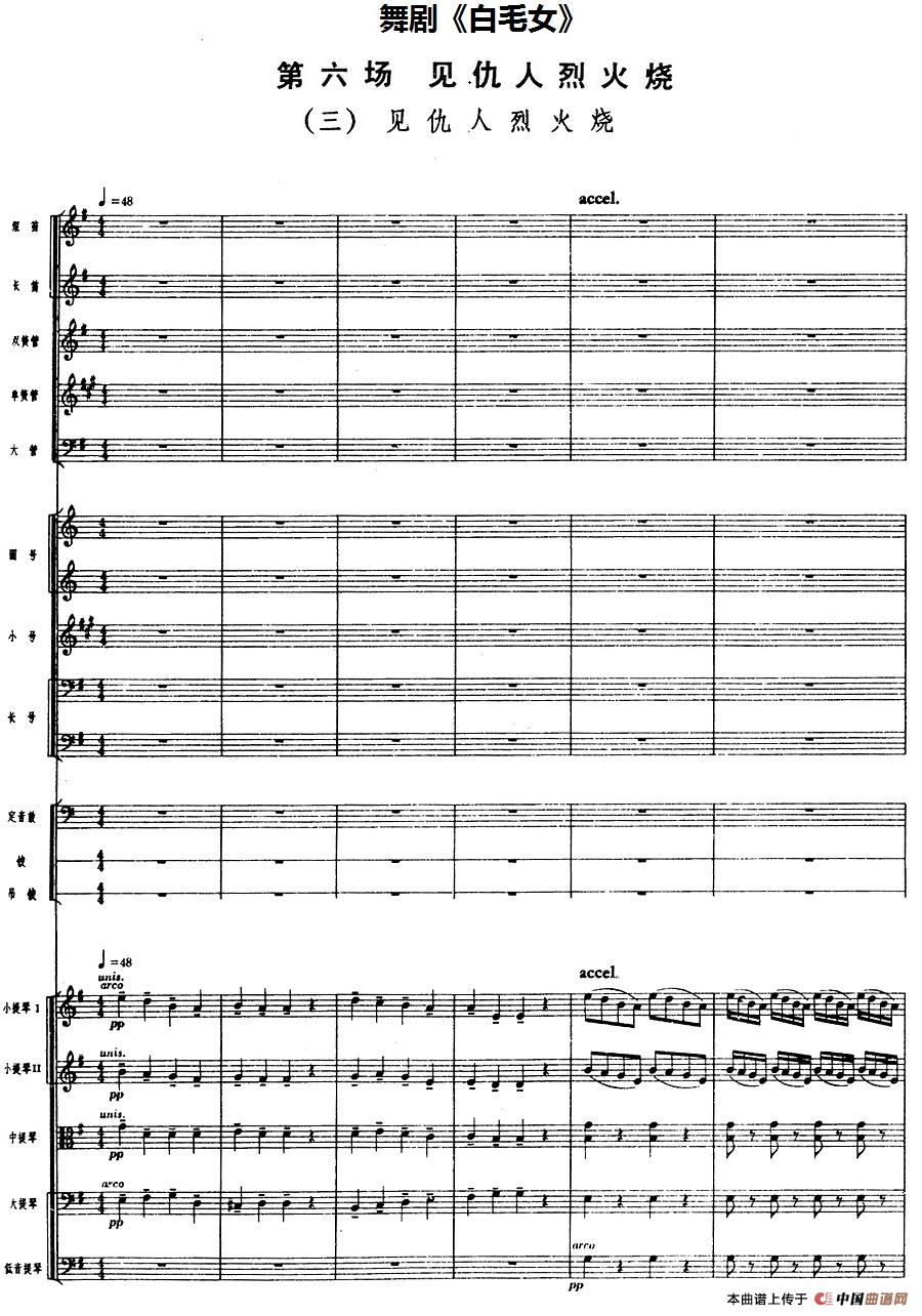 舞剧《白毛女》第六场 见仇人烈火烧(三)见仇人烈火烧(总谱)相关五线谱