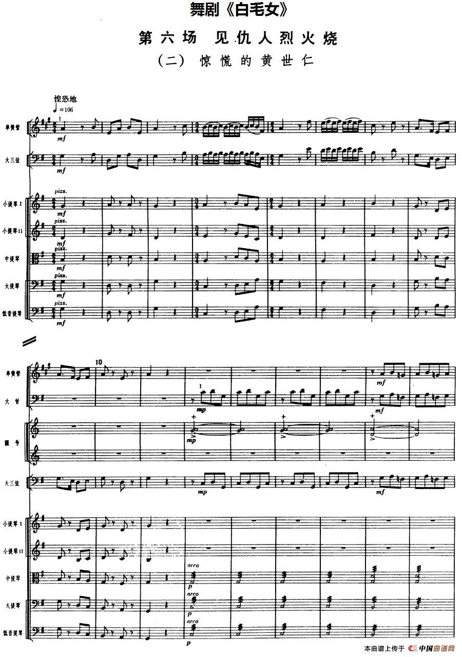 舞剧《白毛女》第六场 见仇人烈火烧(二)惊慌的黄世仁(总谱)相关五线谱