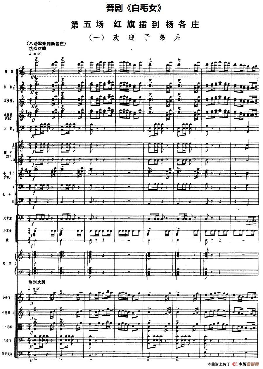 舞剧《白毛女》第五场 红旗插到杨各庄(一)欢迎子弟兵(总谱)相关五线谱