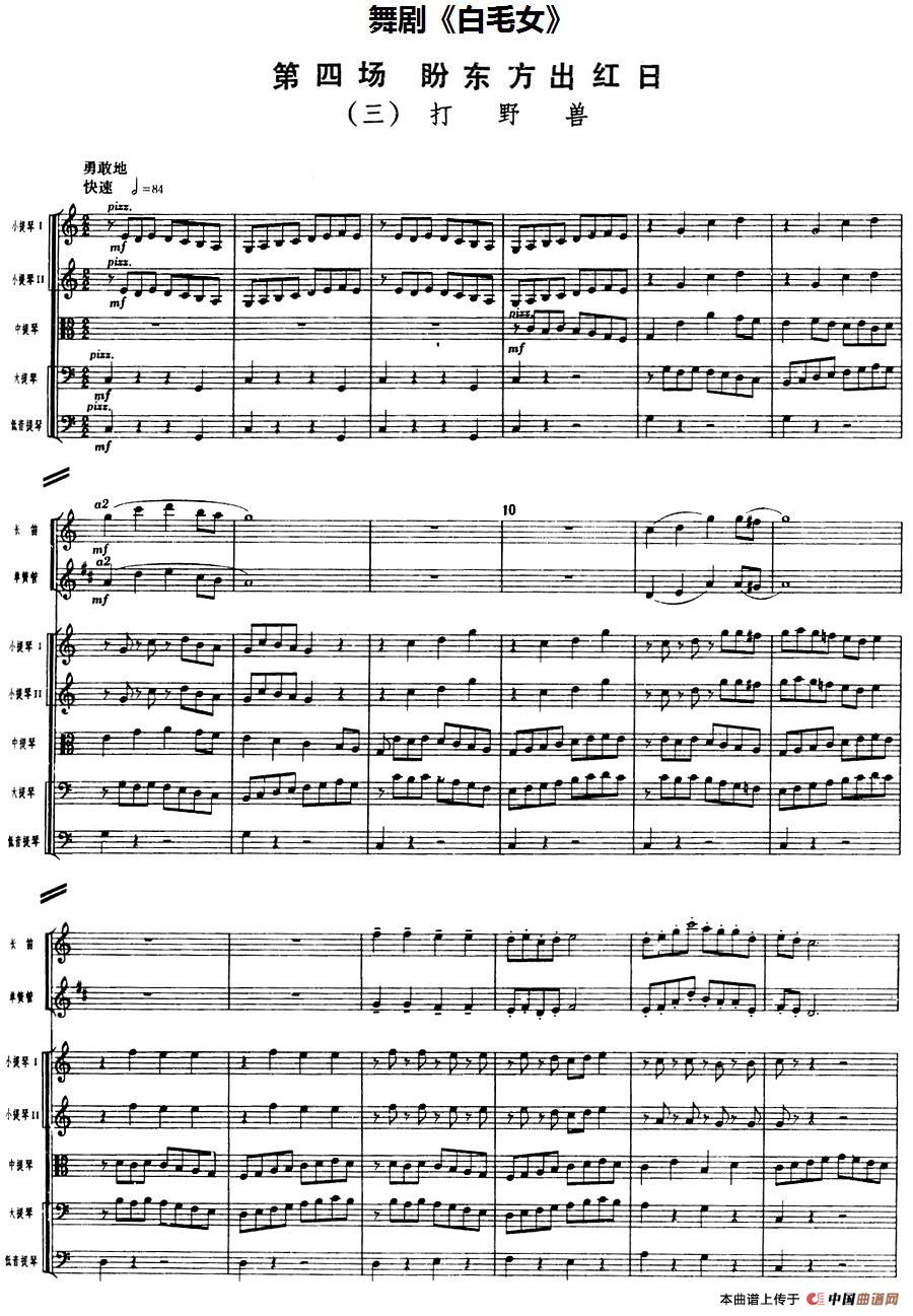 舞剧《白毛女》第四场 盼东方出红日(三)打野兽(总谱)相关五线谱