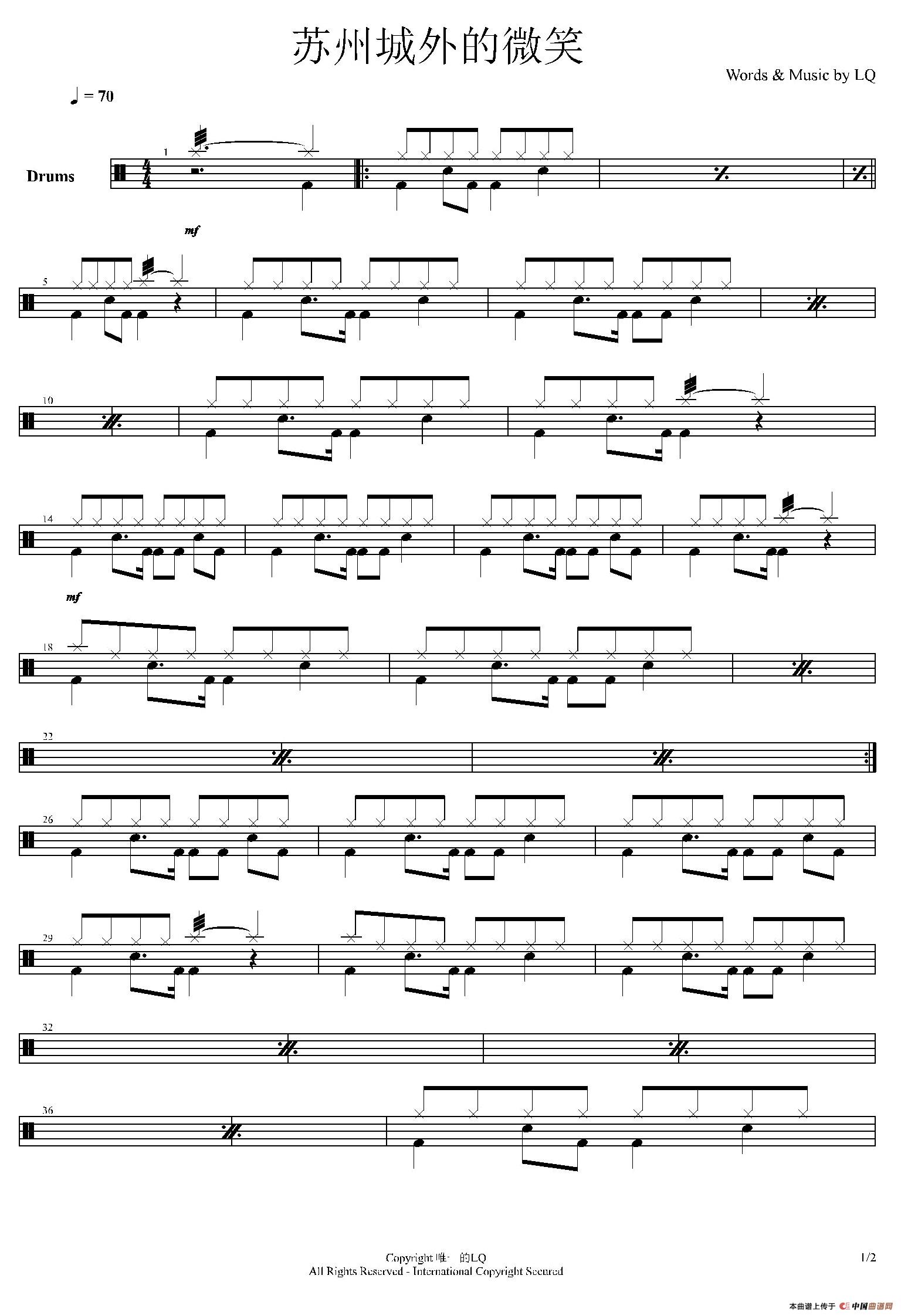 歌声与微笑(架子鼓、主旋律+鼓谱)