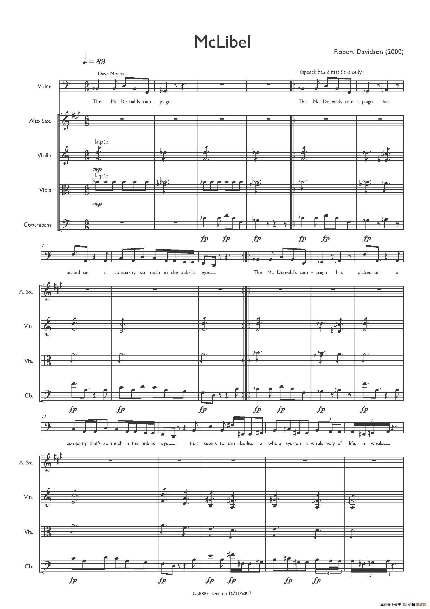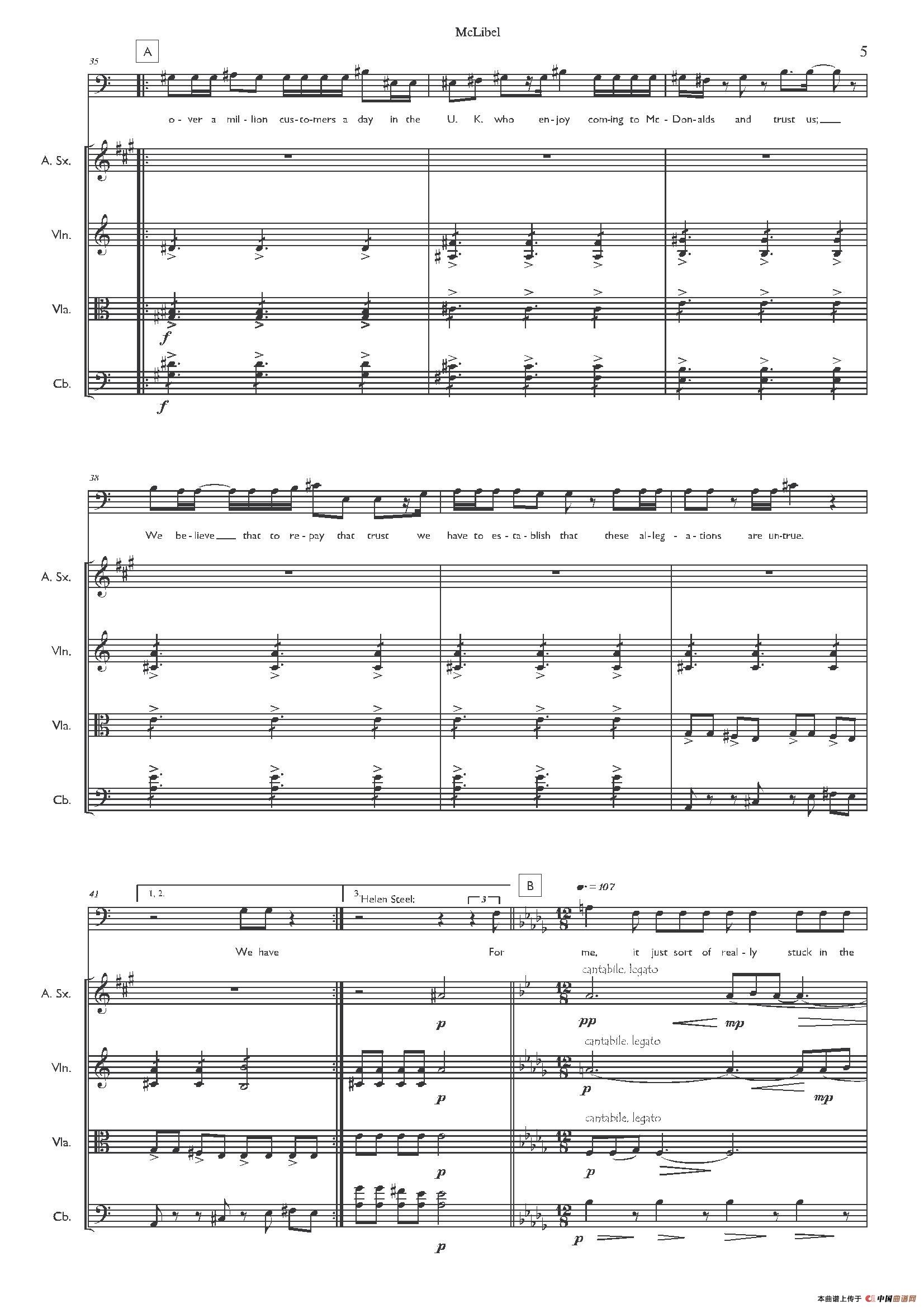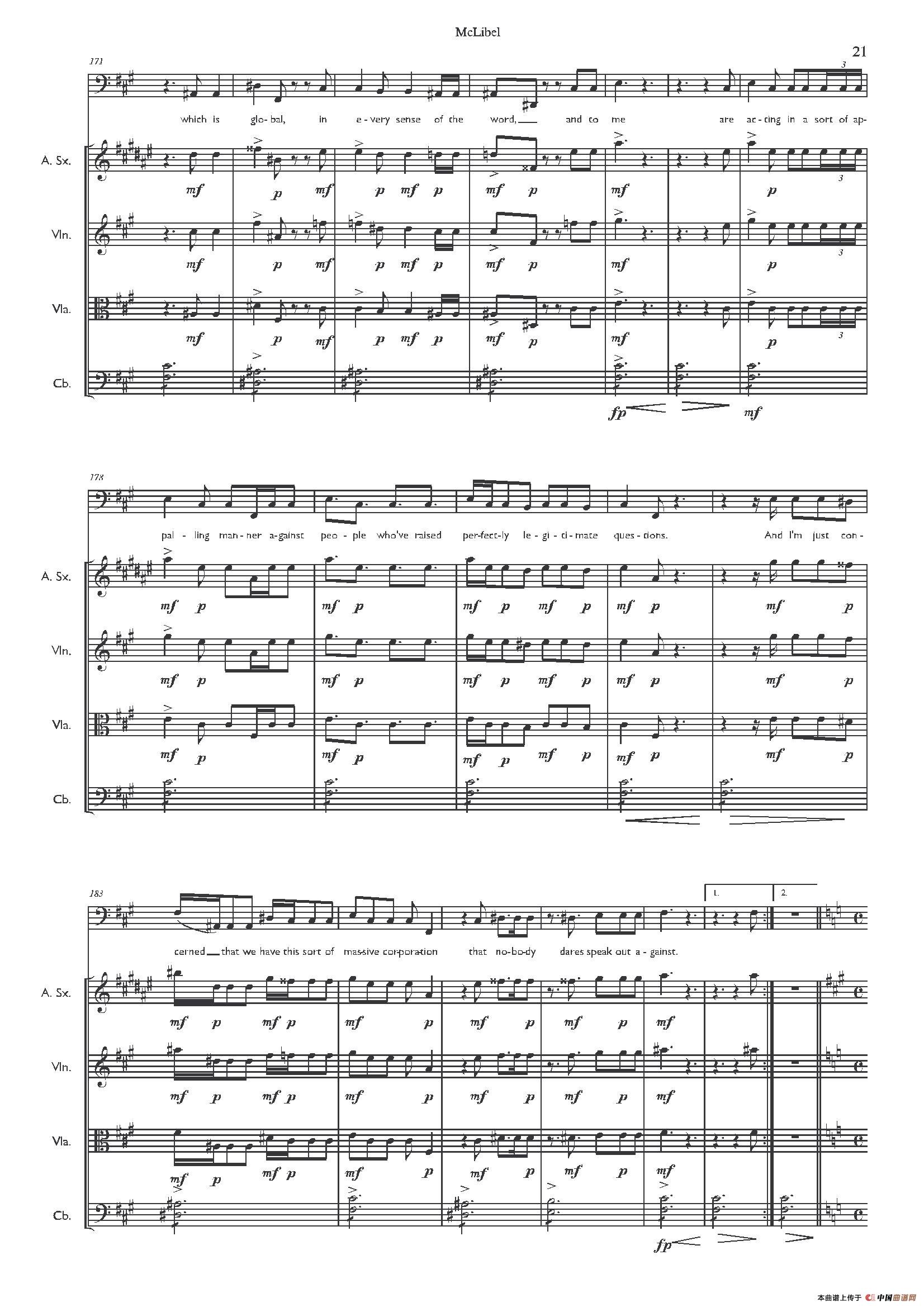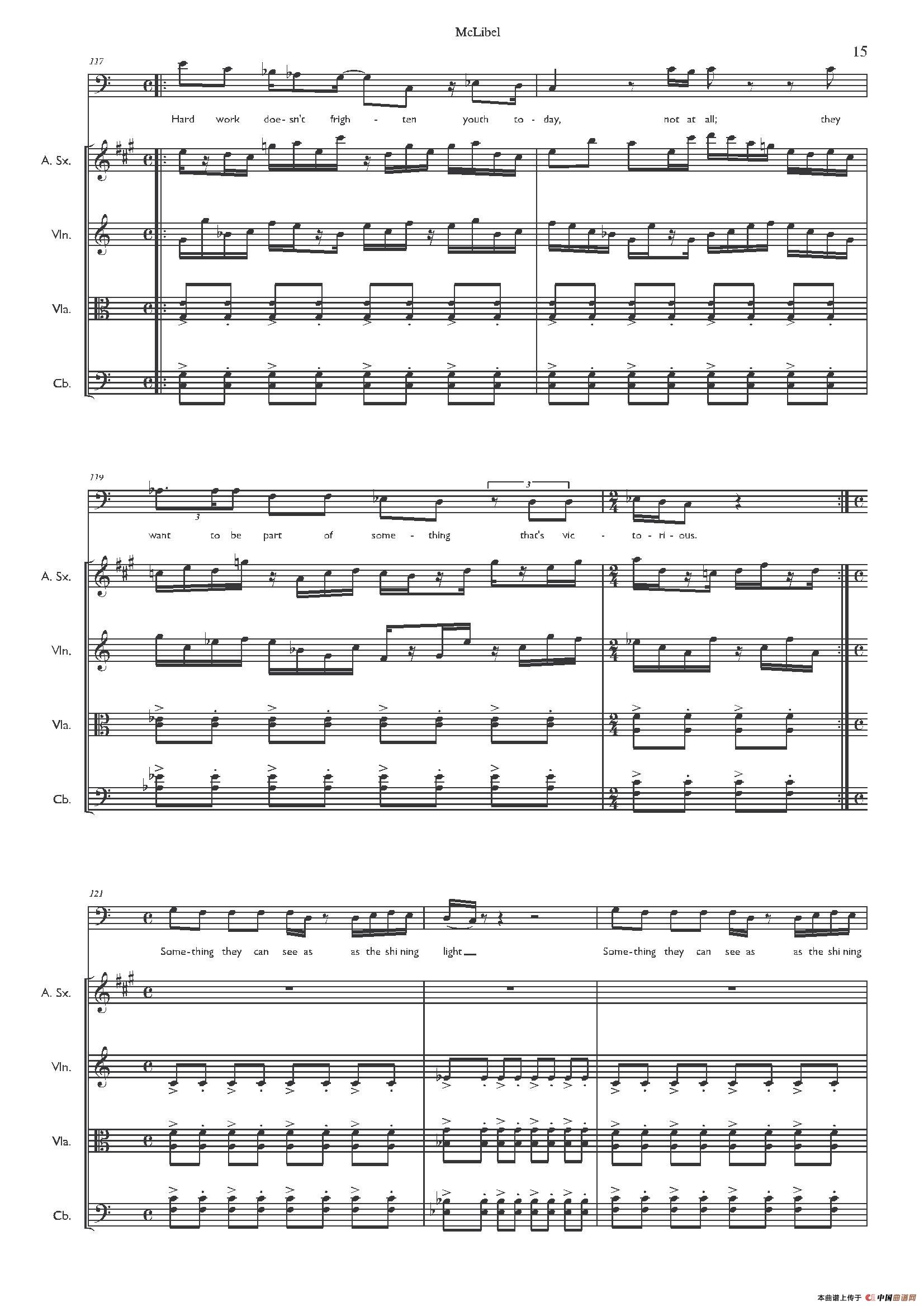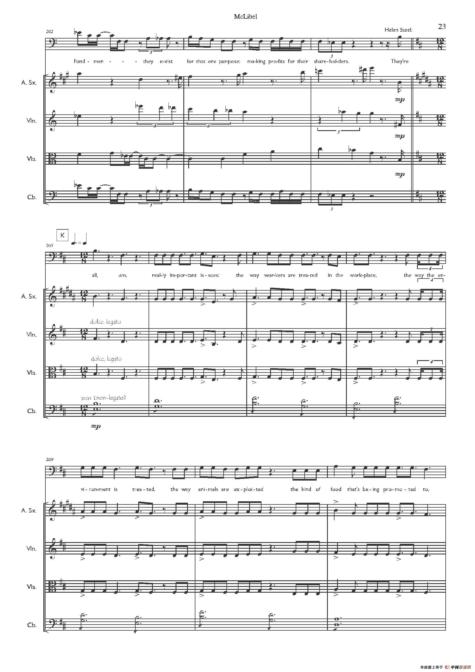 Mclibel(小提琴中提琴萨克斯声乐贝斯五重奏)相关五线谱