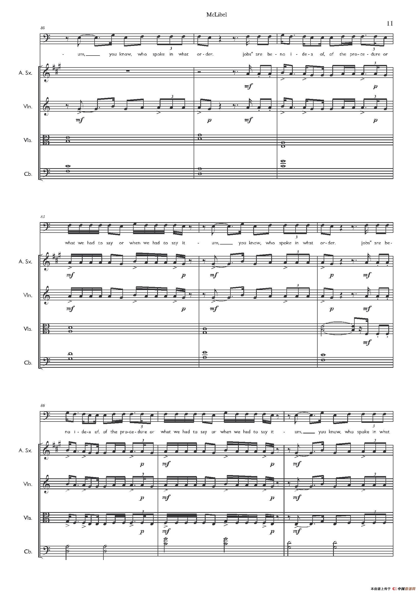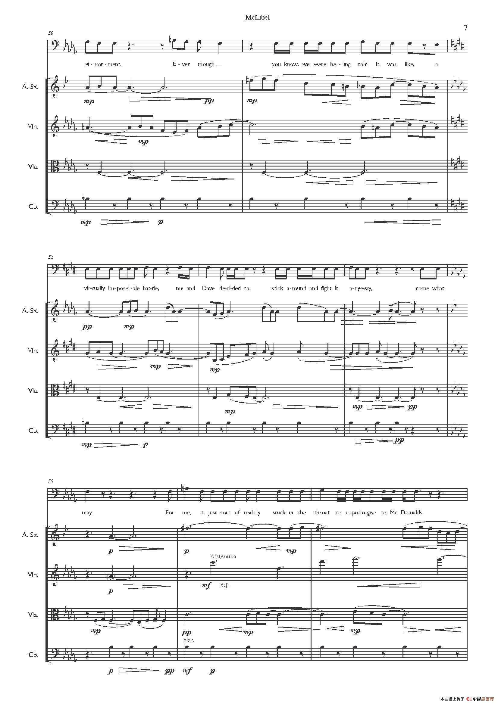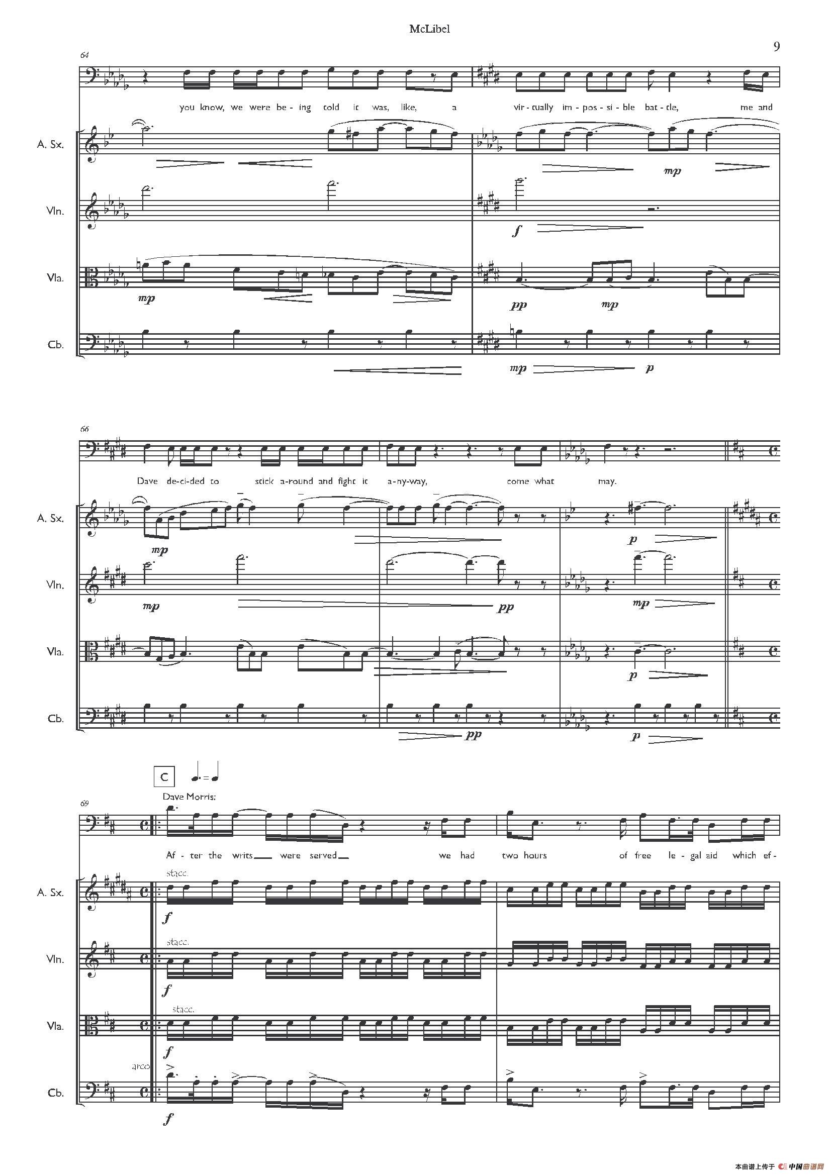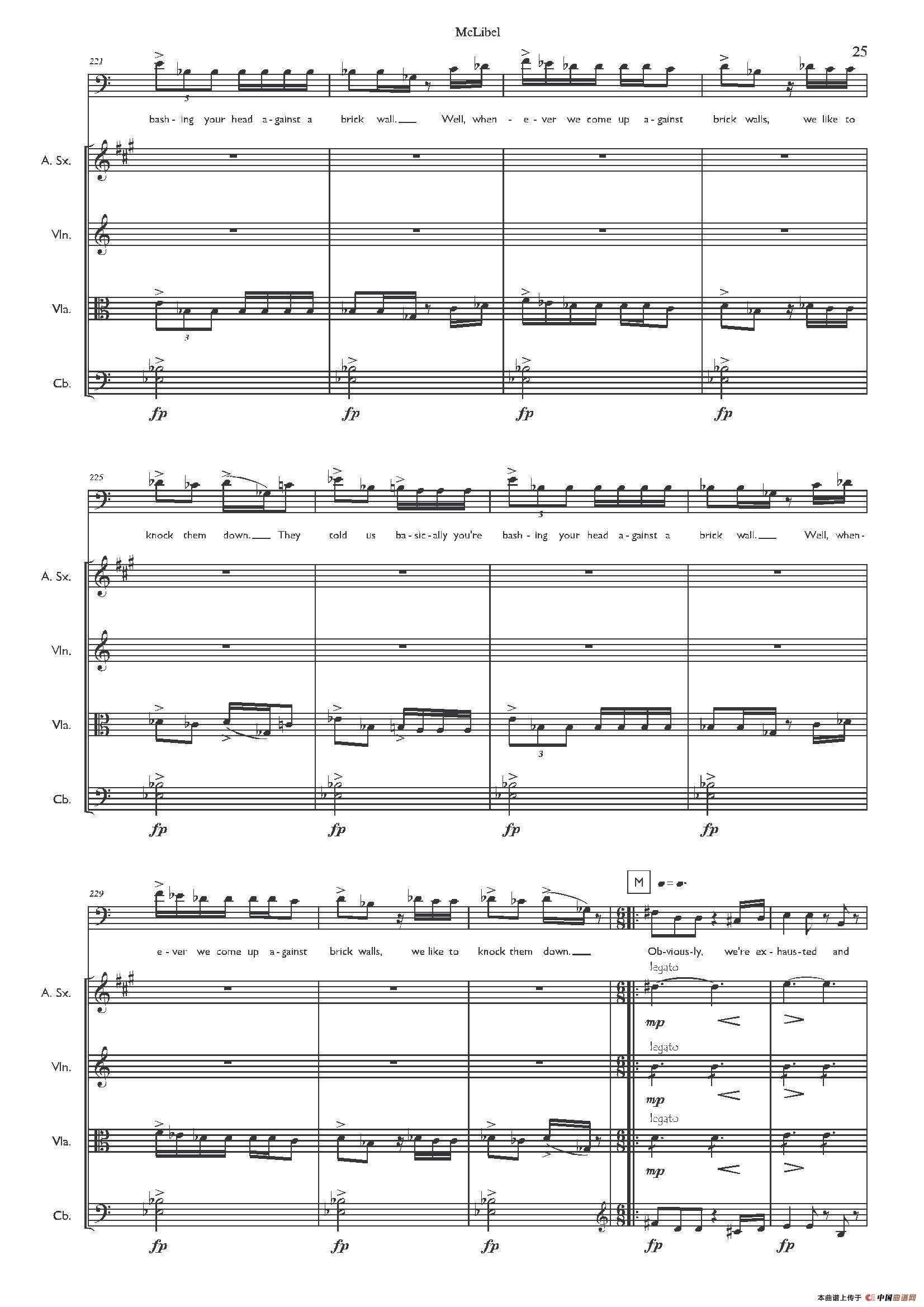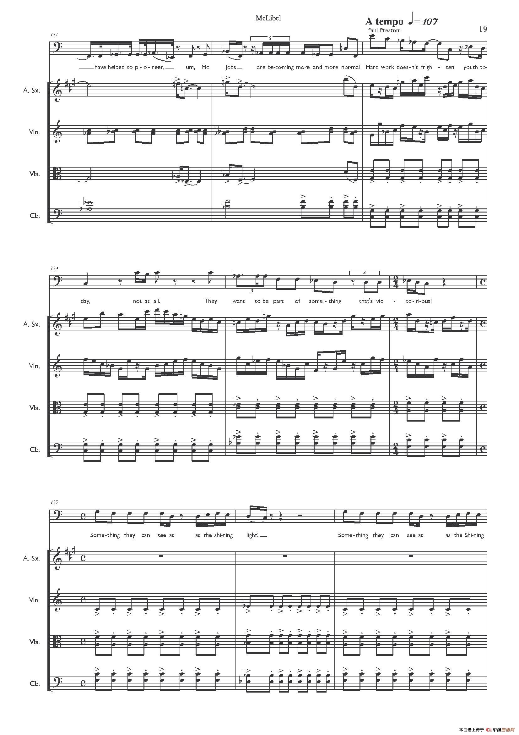 Mclibel(小提琴中提琴萨克斯声乐贝斯五重奏)相关五线谱