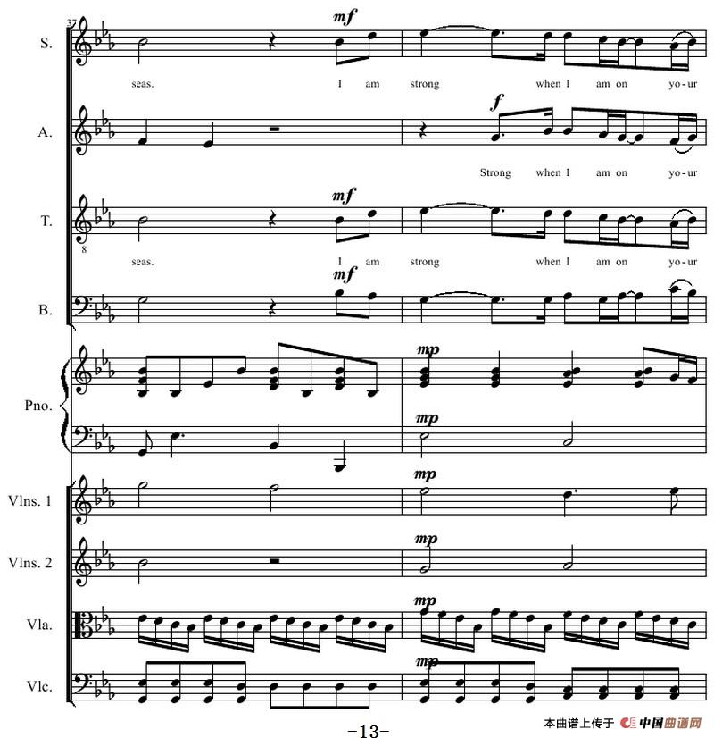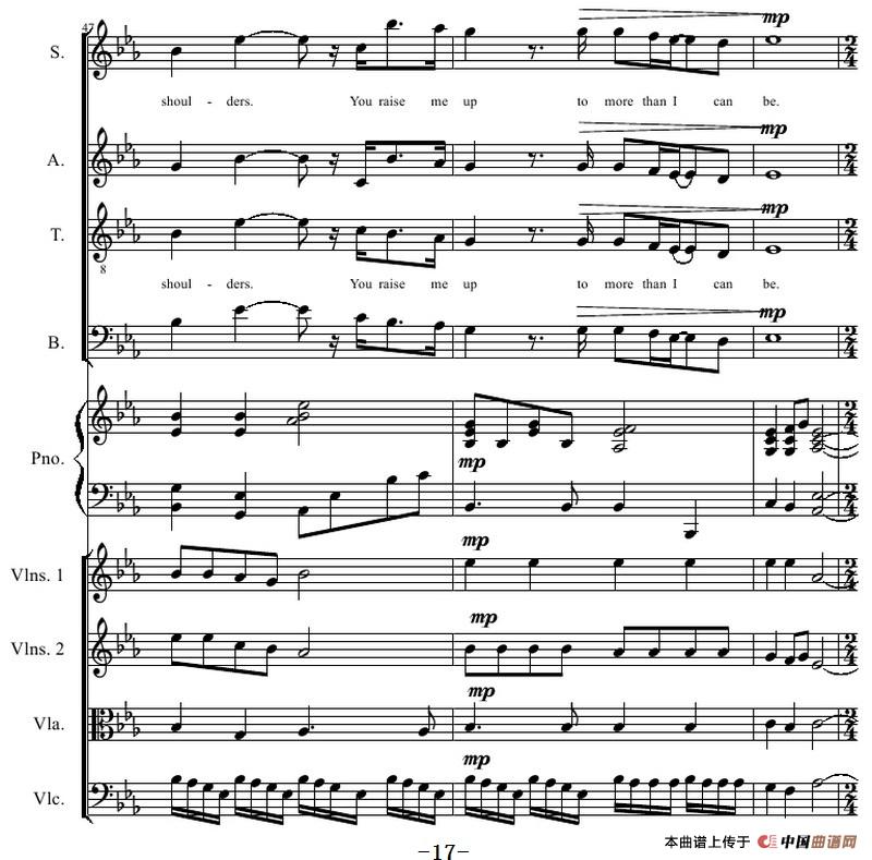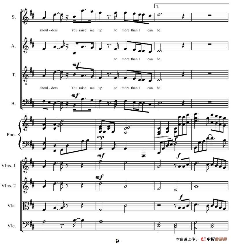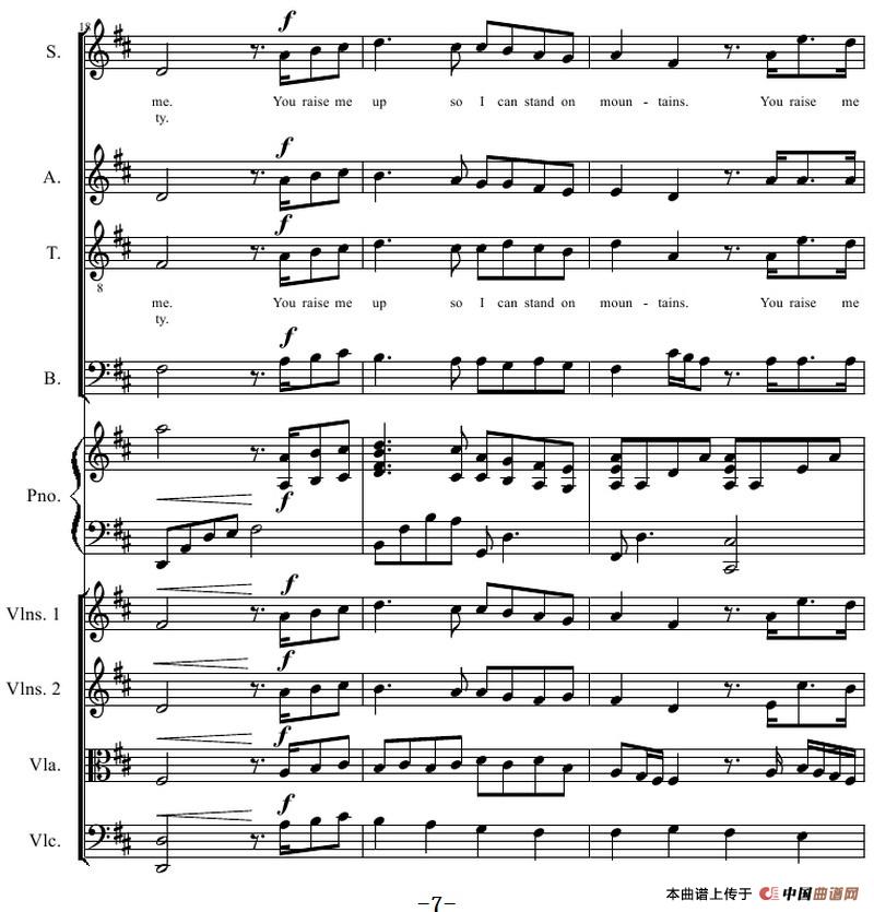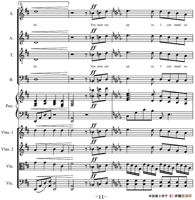 You Raise Me Up(四部合唱钢琴和乐队)相关五线谱