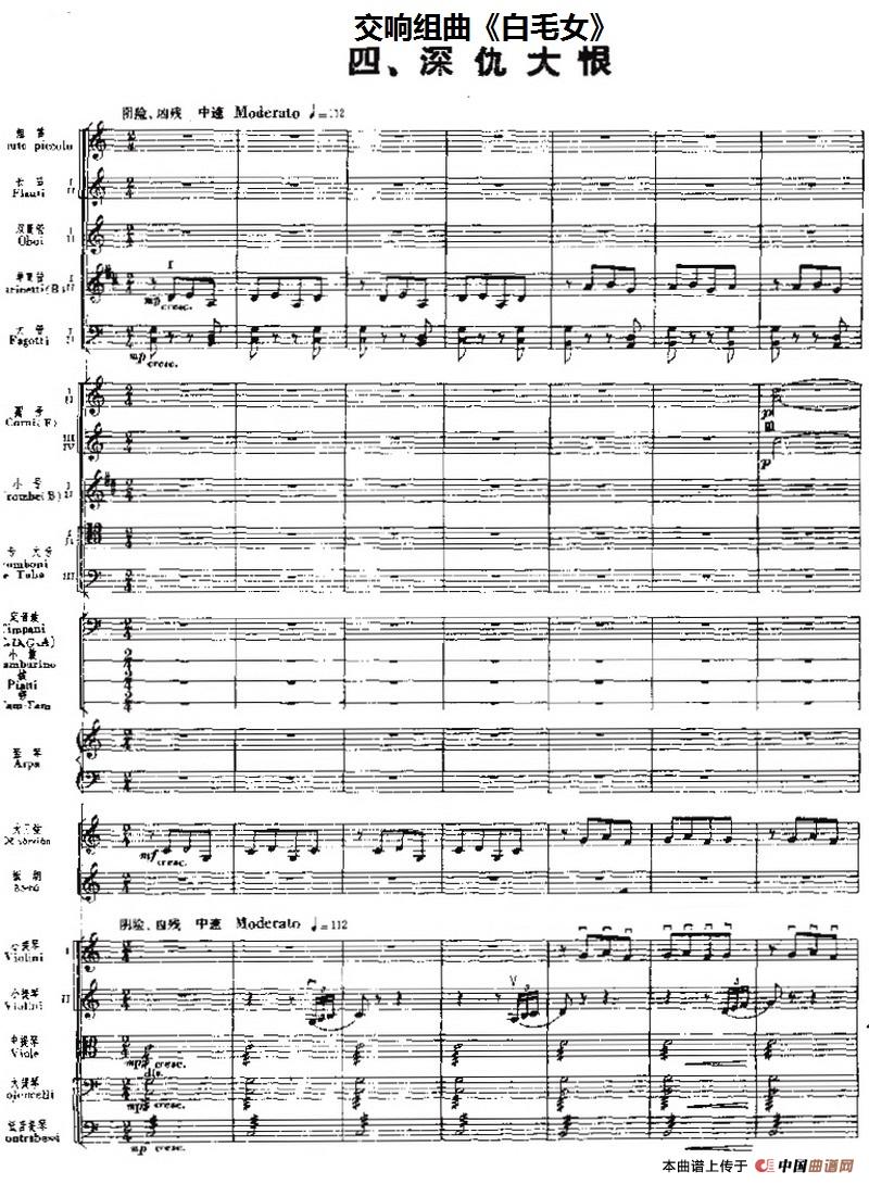 交响组曲《白毛女》深仇大恨(总谱)相关五线谱