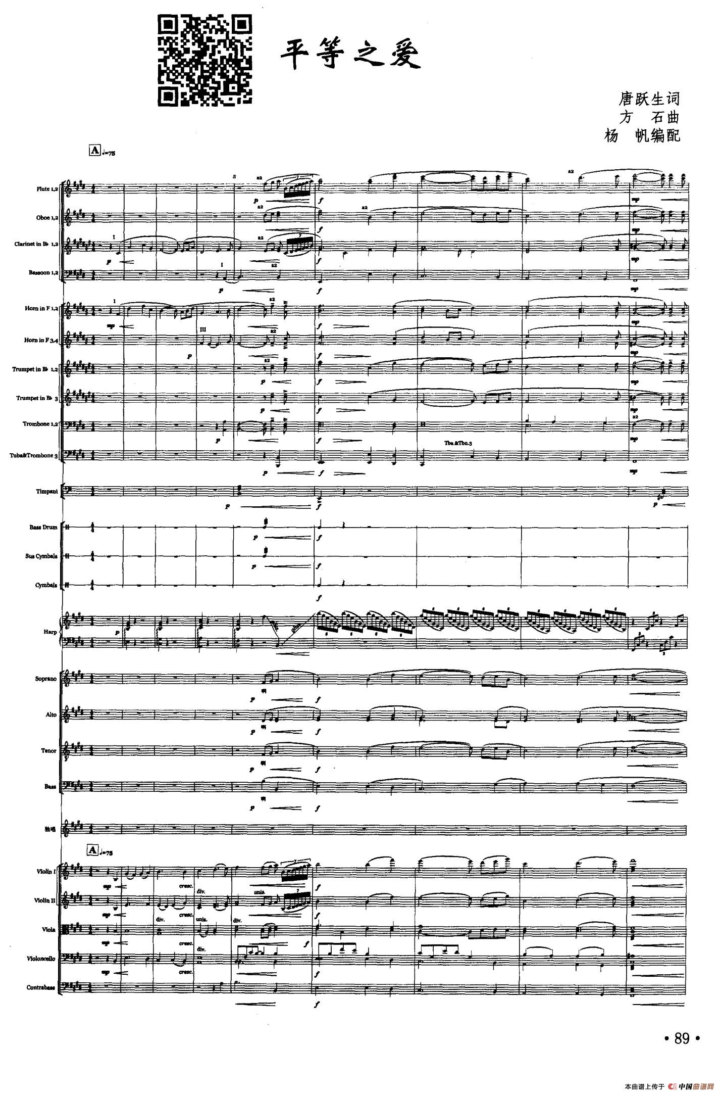 平等之爱(声乐及伴奏总谱)相关五线谱