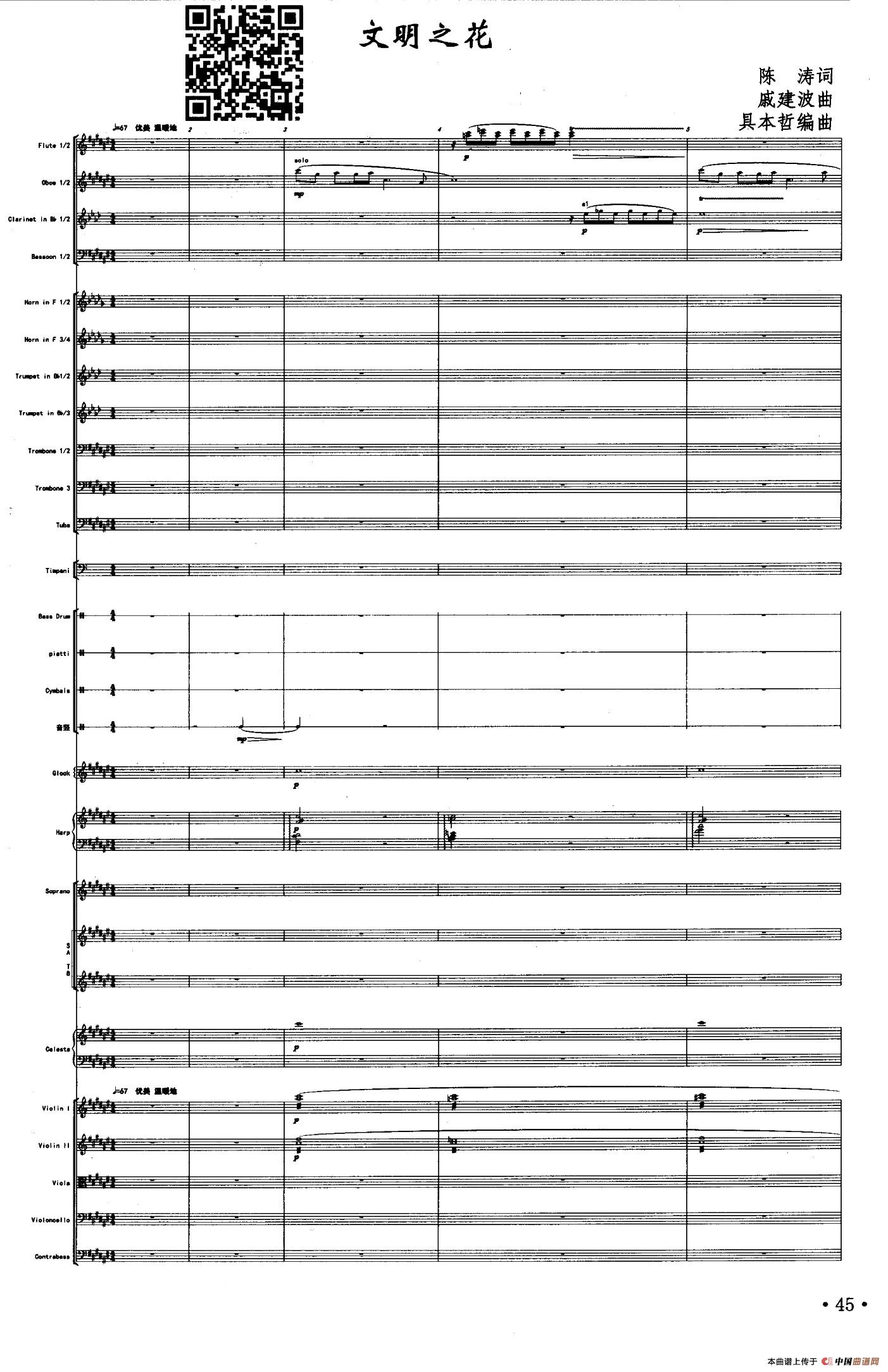 文明之花(陈涛词 戚建波曲、声乐及伴奏总谱)相关五线谱