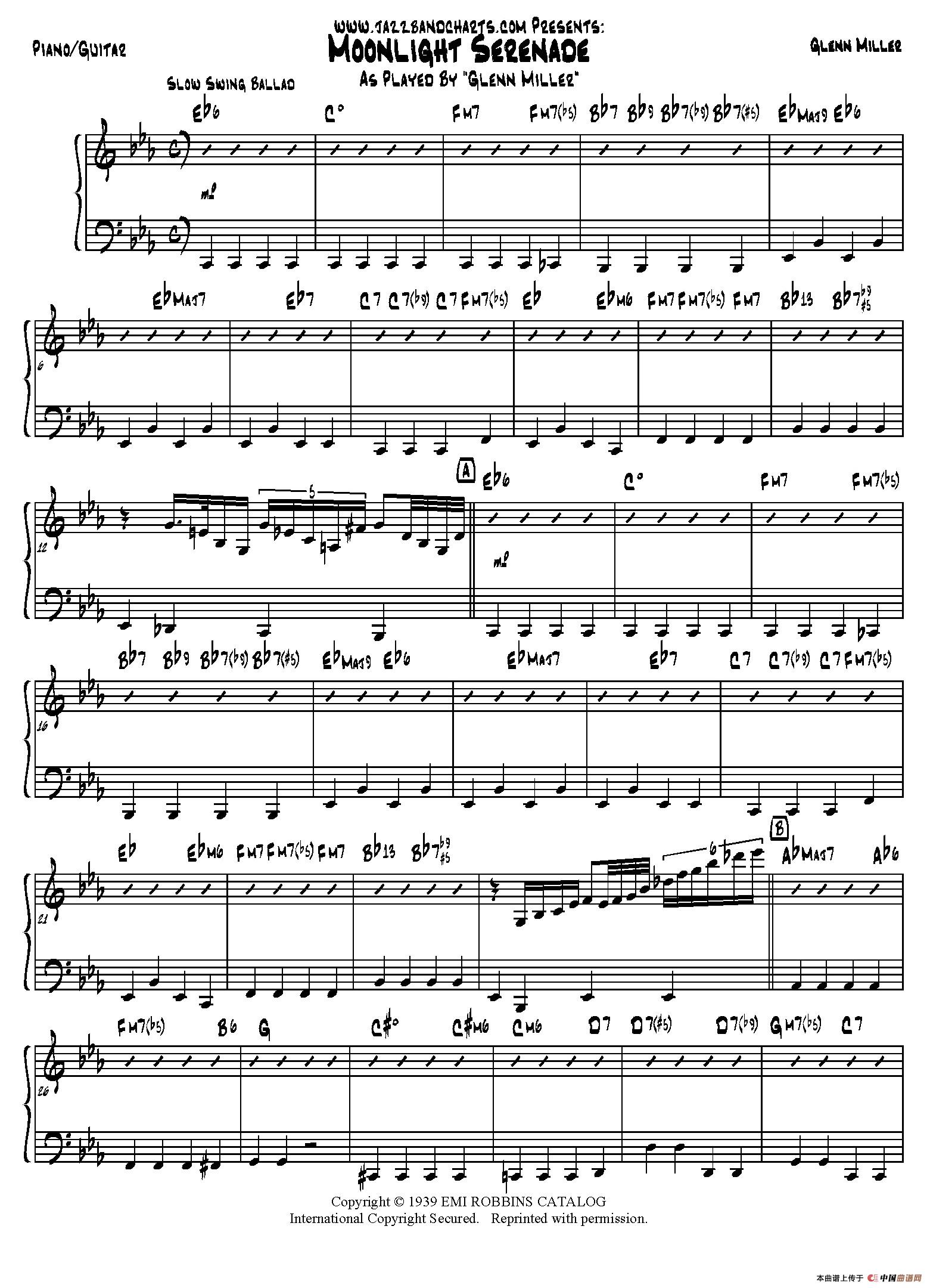 Moonlight Serenade(钢琴/吉他分谱)相关五线谱