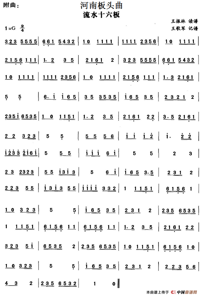 河南板头曲:流水十六板相关五线谱
