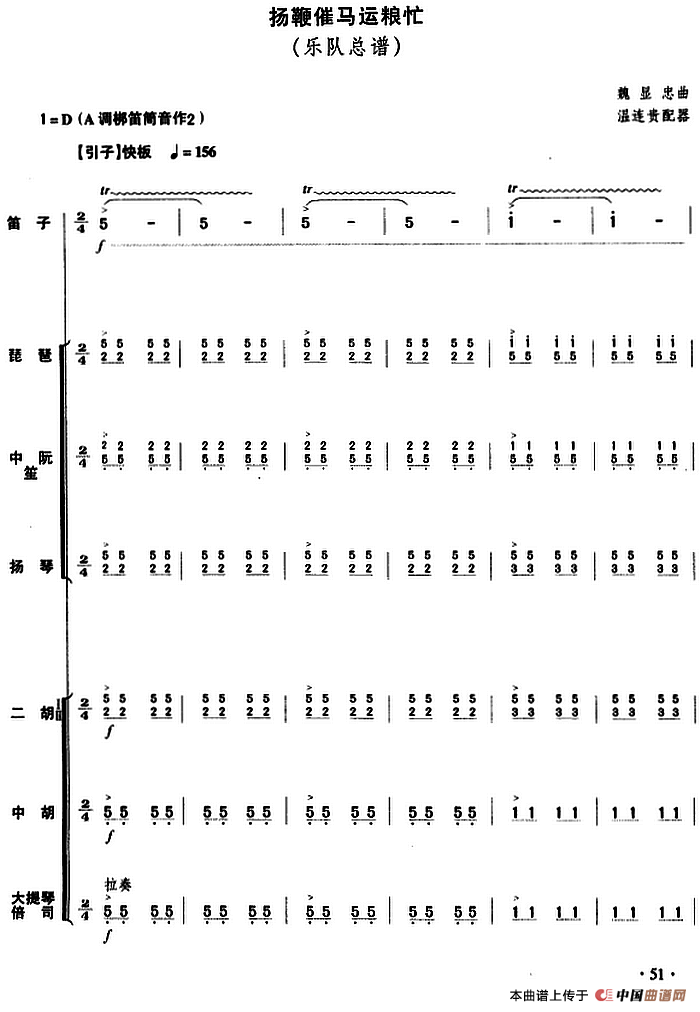 扬鞭催马运粮忙(乐队总谱)相关五线谱