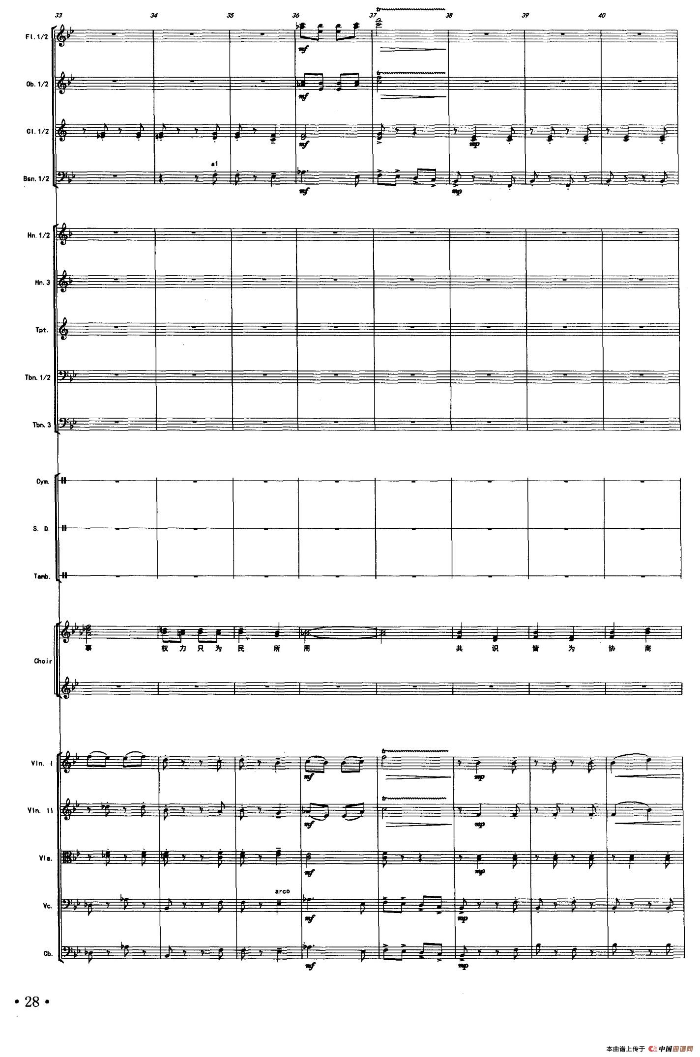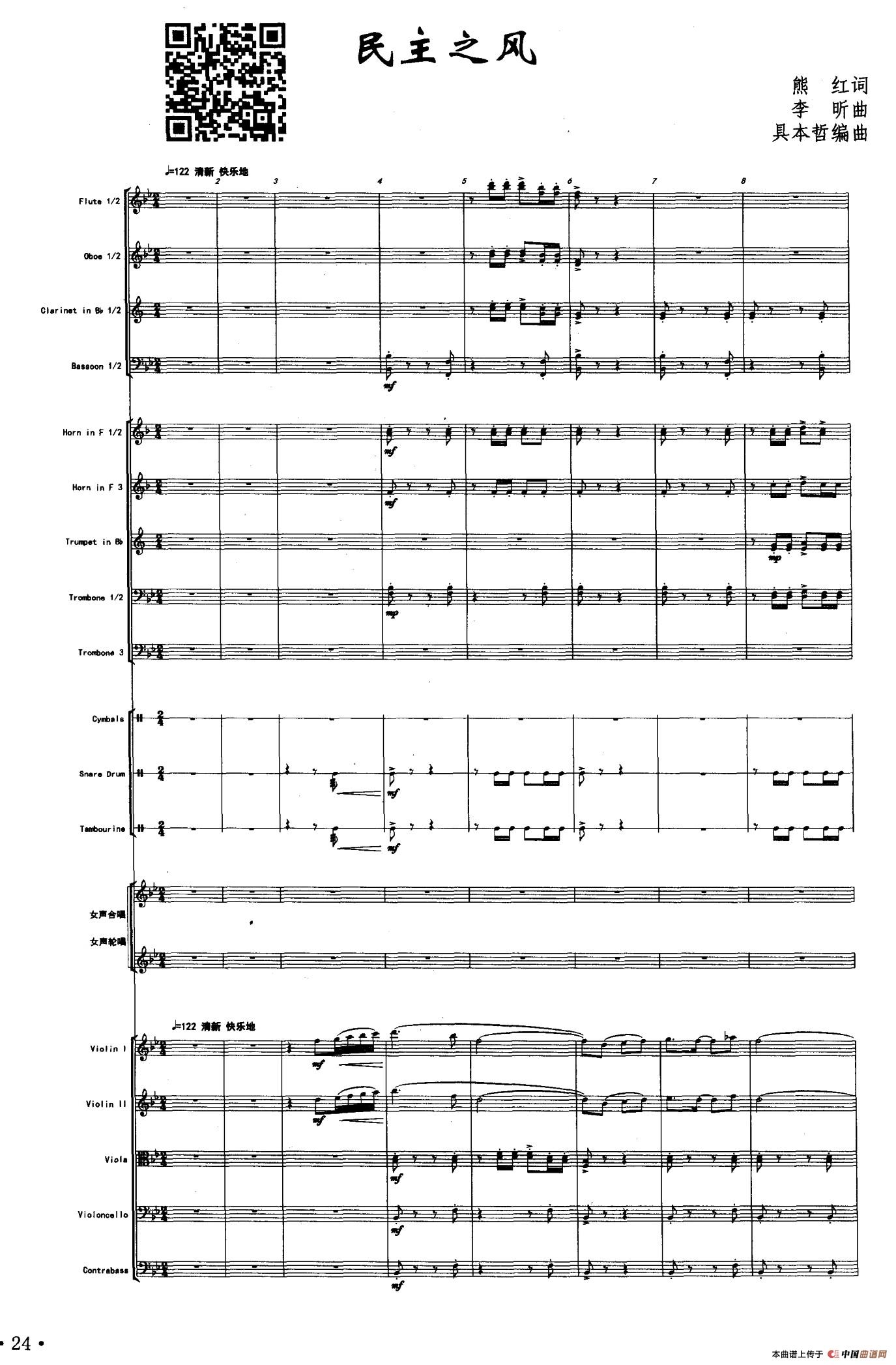 民主之风(声乐及伴奏总谱)相关五线谱