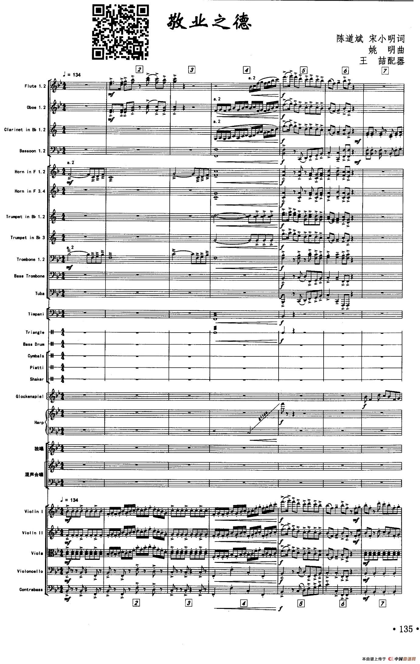 敬业之德(声乐及伴奏总谱)相关五线谱