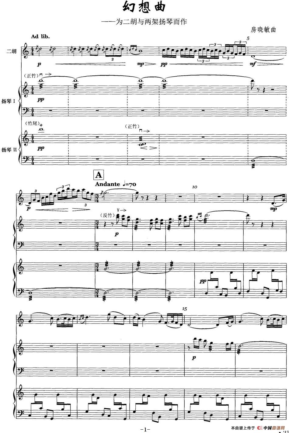 幻想曲(为二胡与两架扬琴而作)相关五线谱